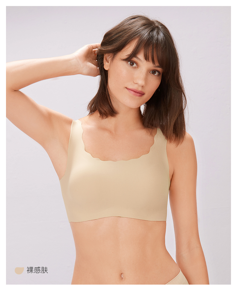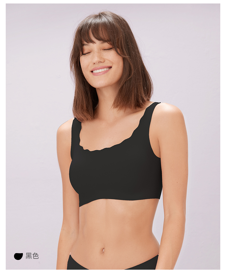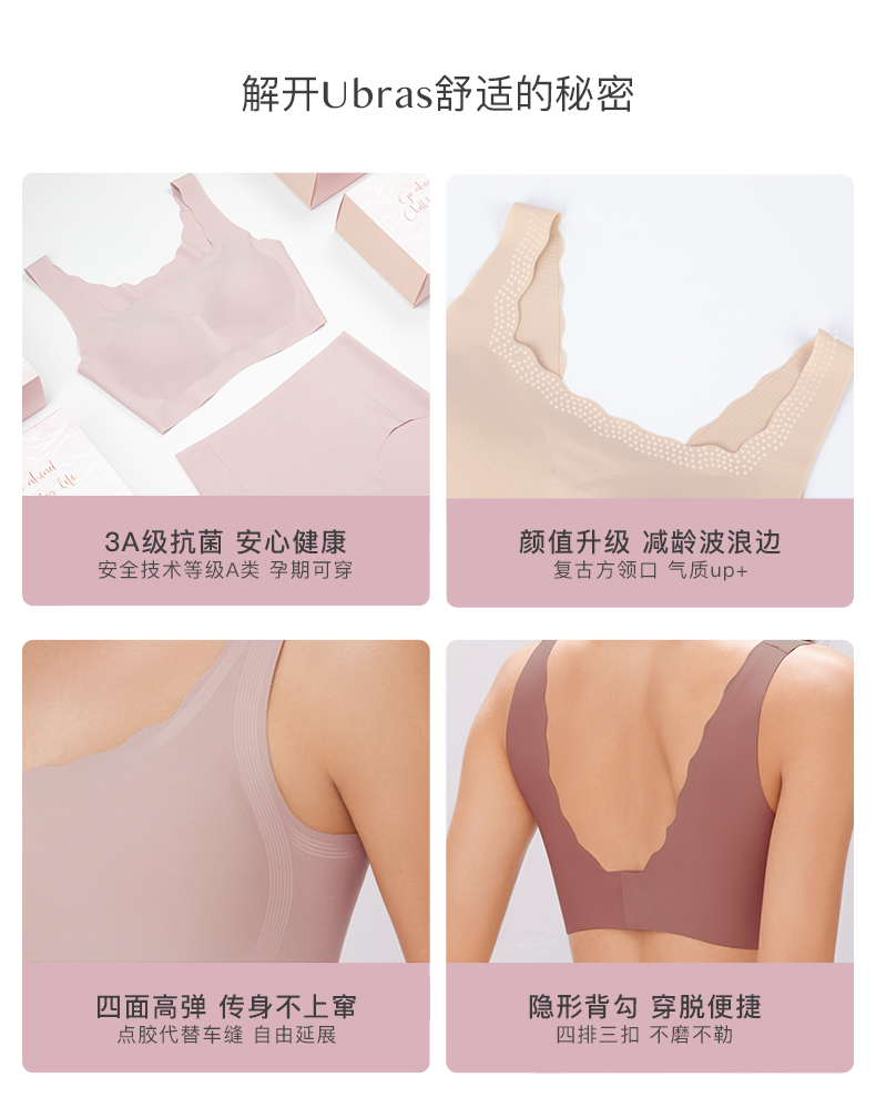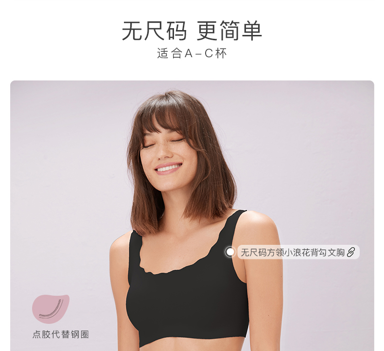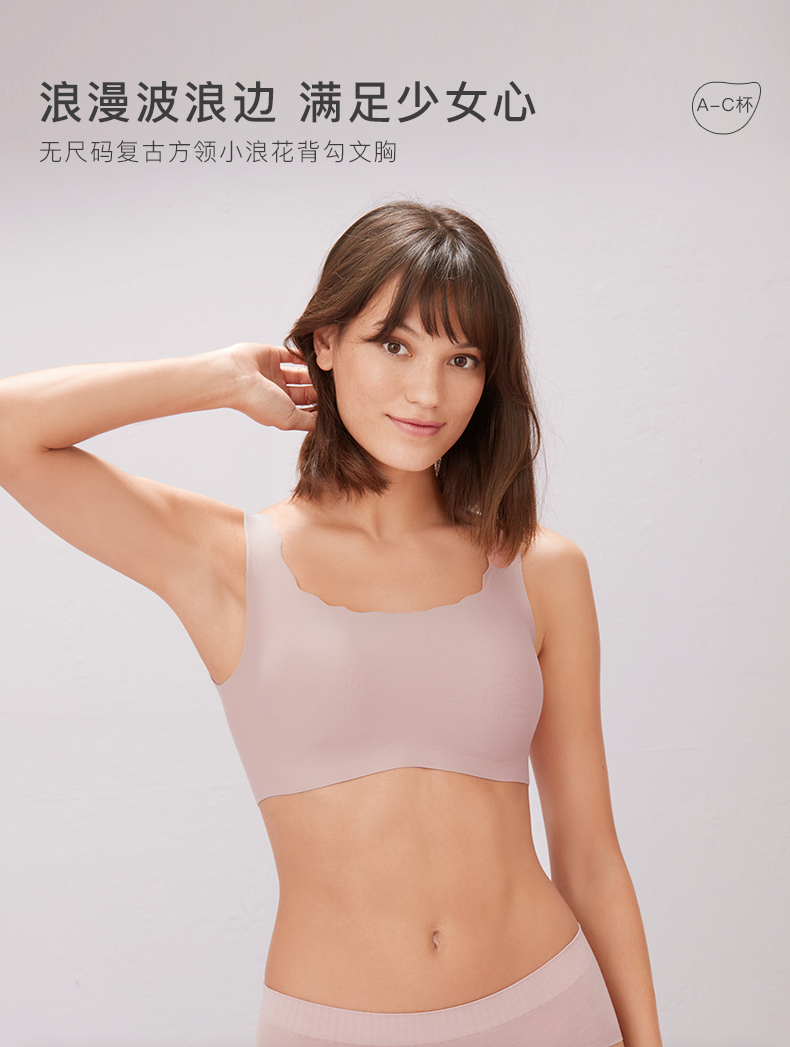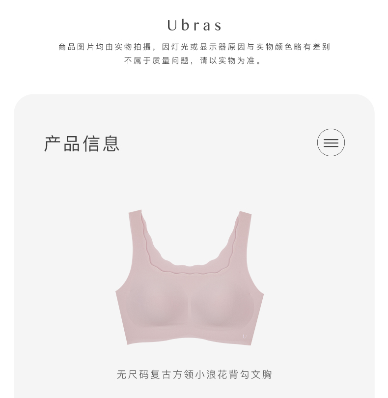 Ubras无尺码复古方领小浪花背勾文胸内衣女无钢圈无痕舒适透气