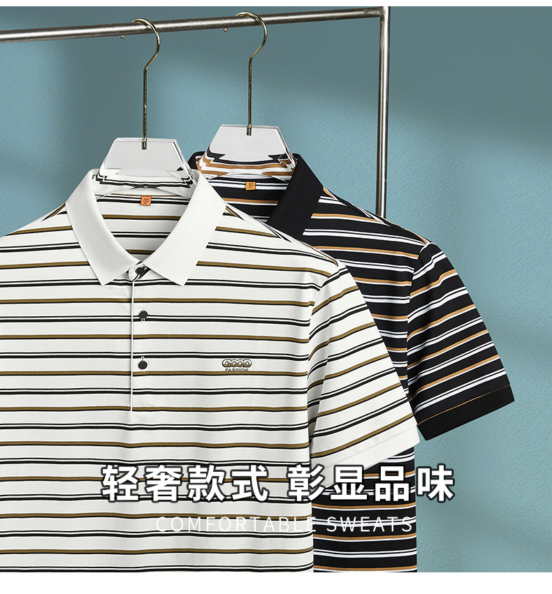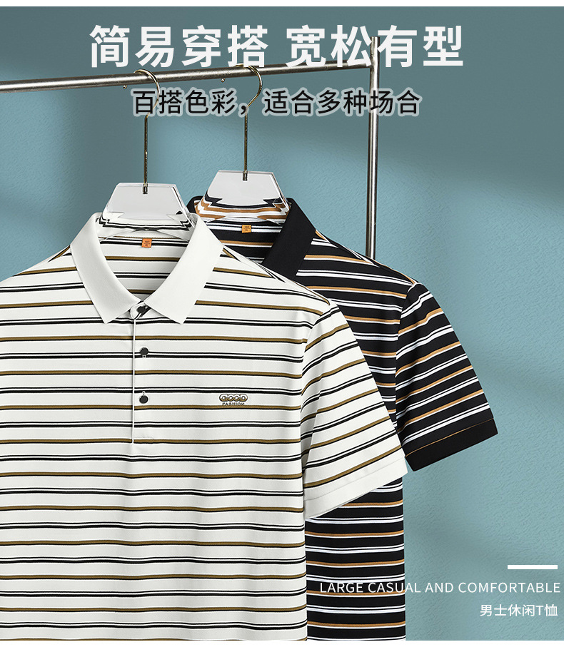 【DDP】大依优型大码短袖POLO衫时尚翻领半袖体恤男装加肥加大码夏装肥佬休闲条纹棉质