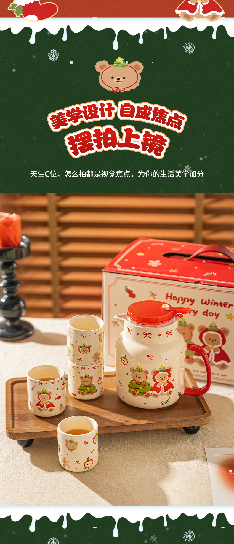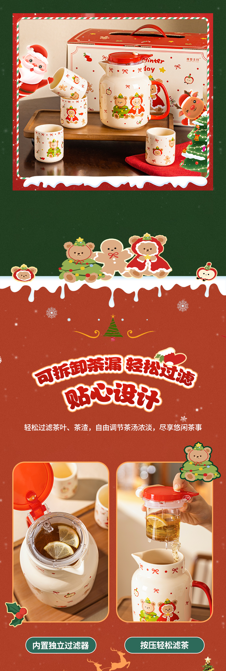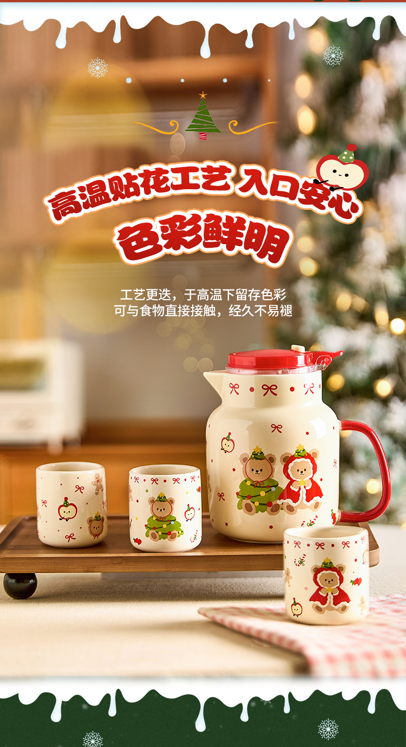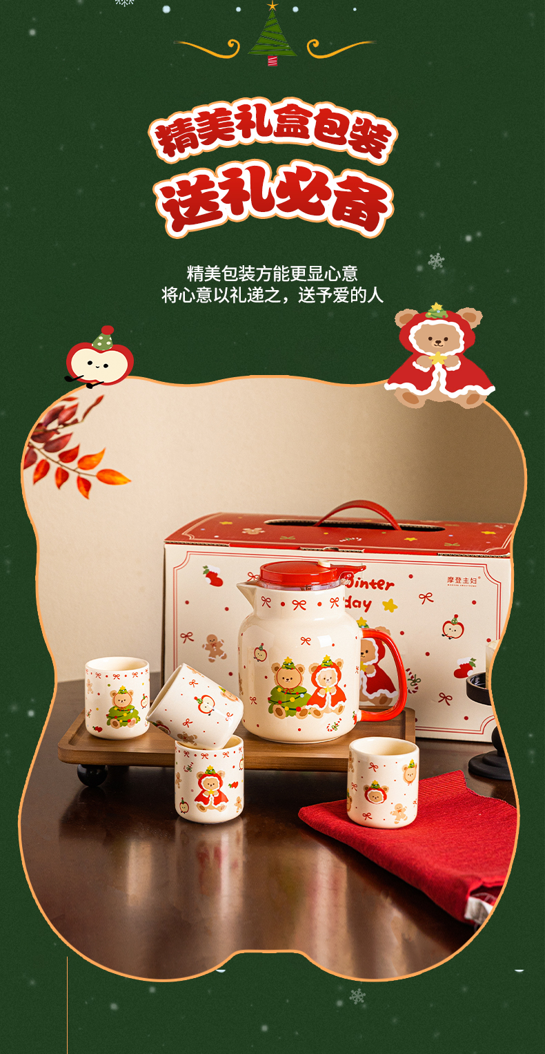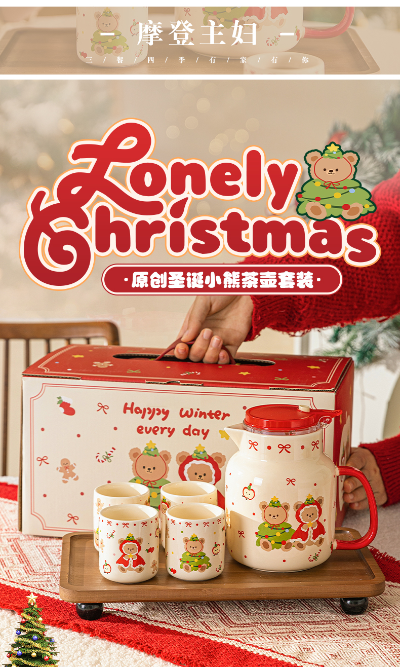 摩登主妇圣诞小熊陶瓷泡茶壶新婚乔迁生日圣诞节礼物家用茶杯可爱茶具套装