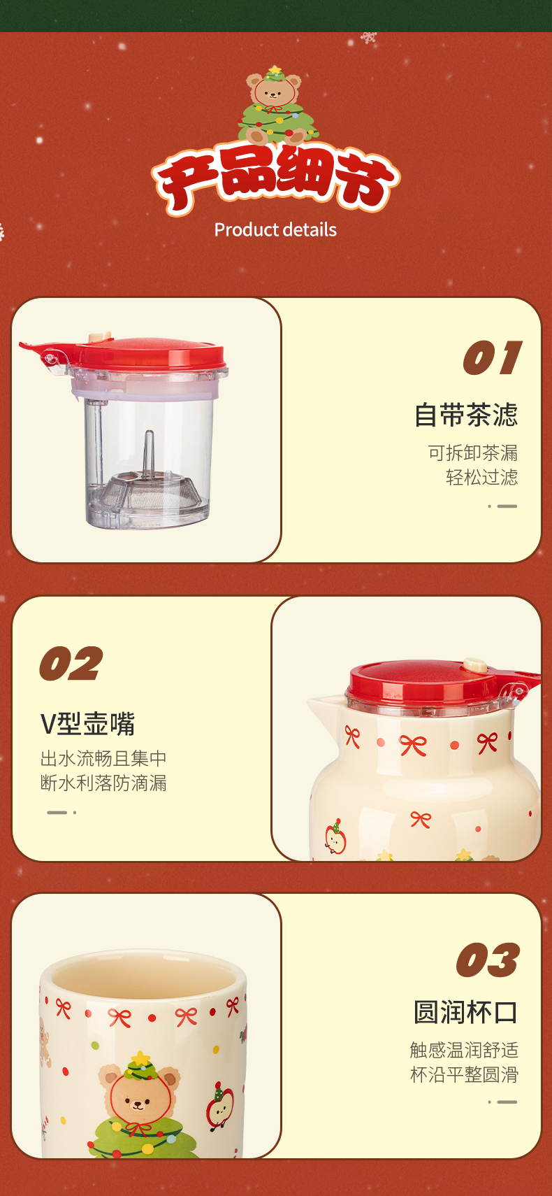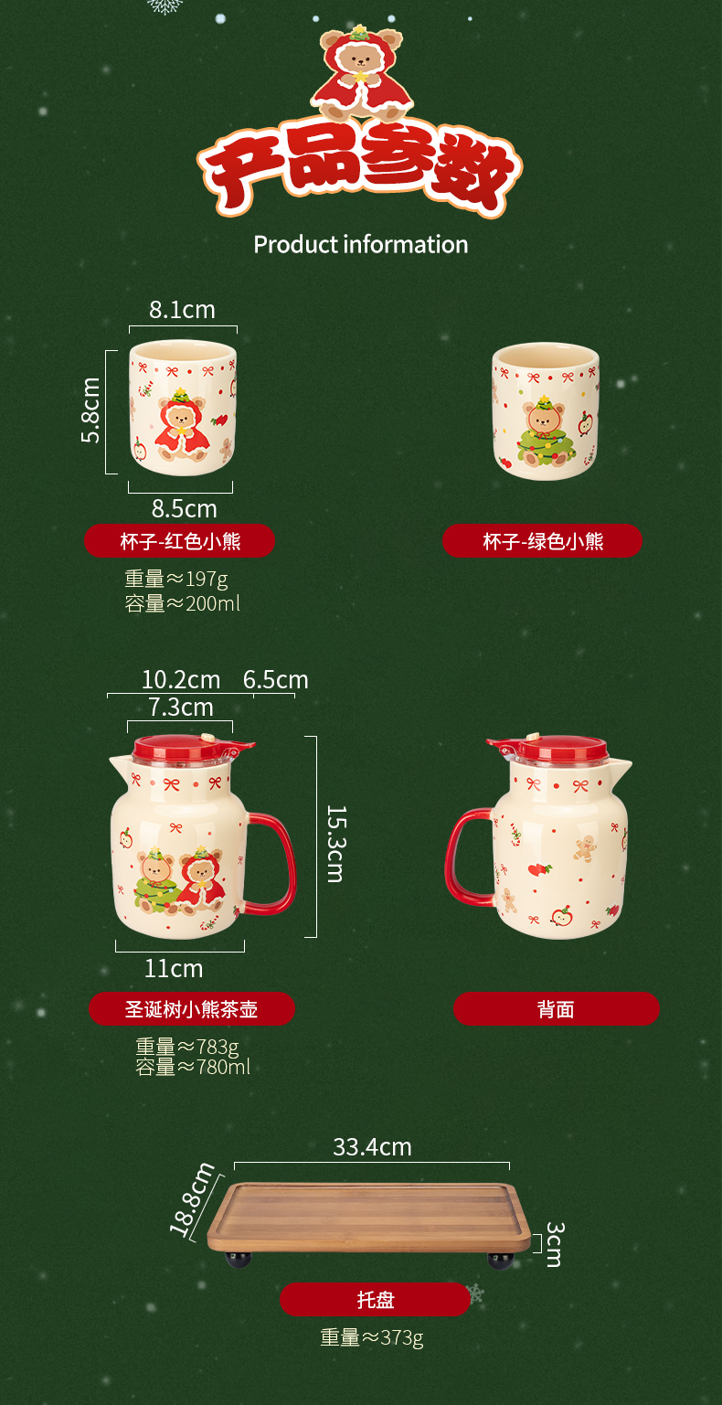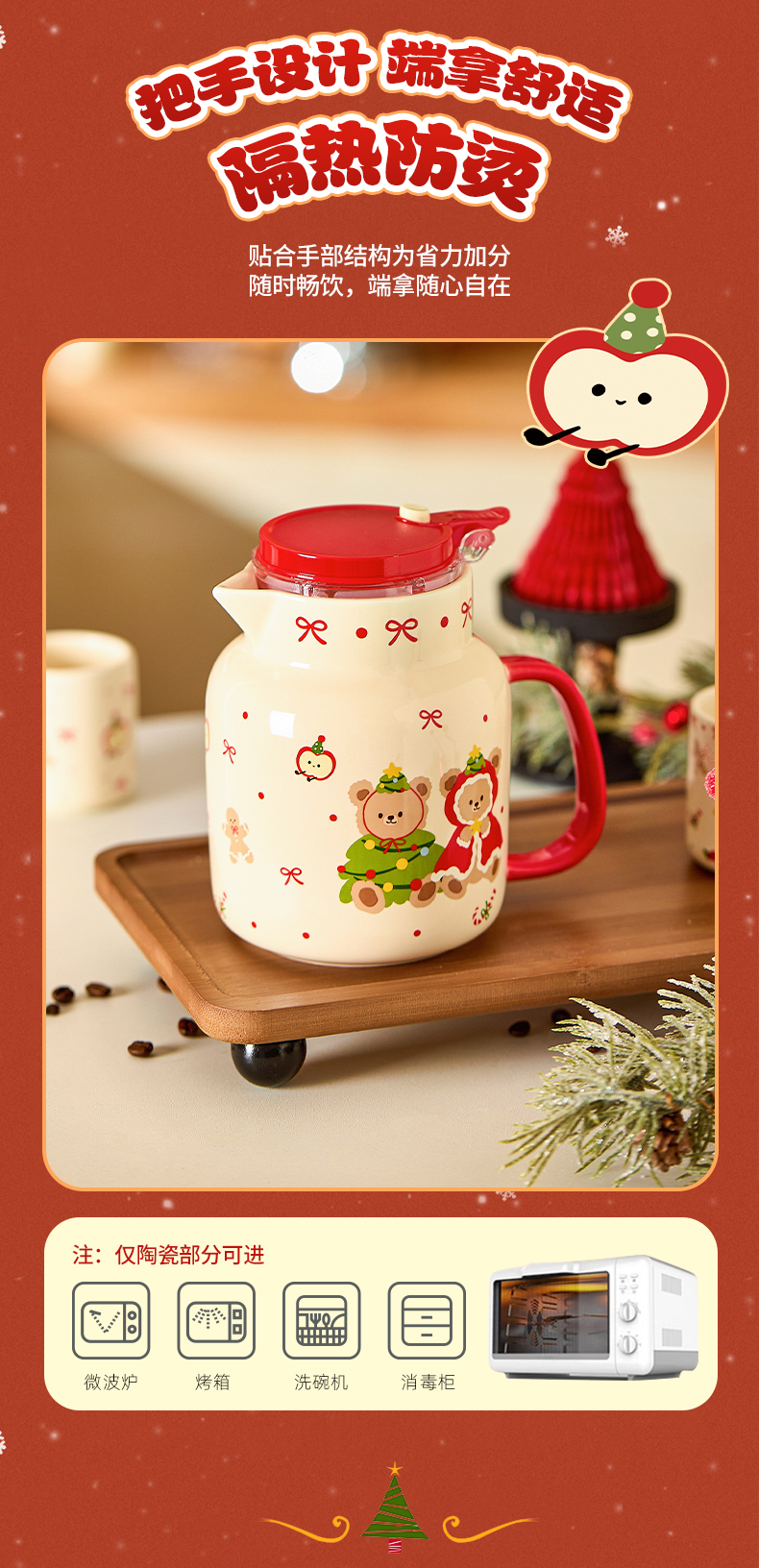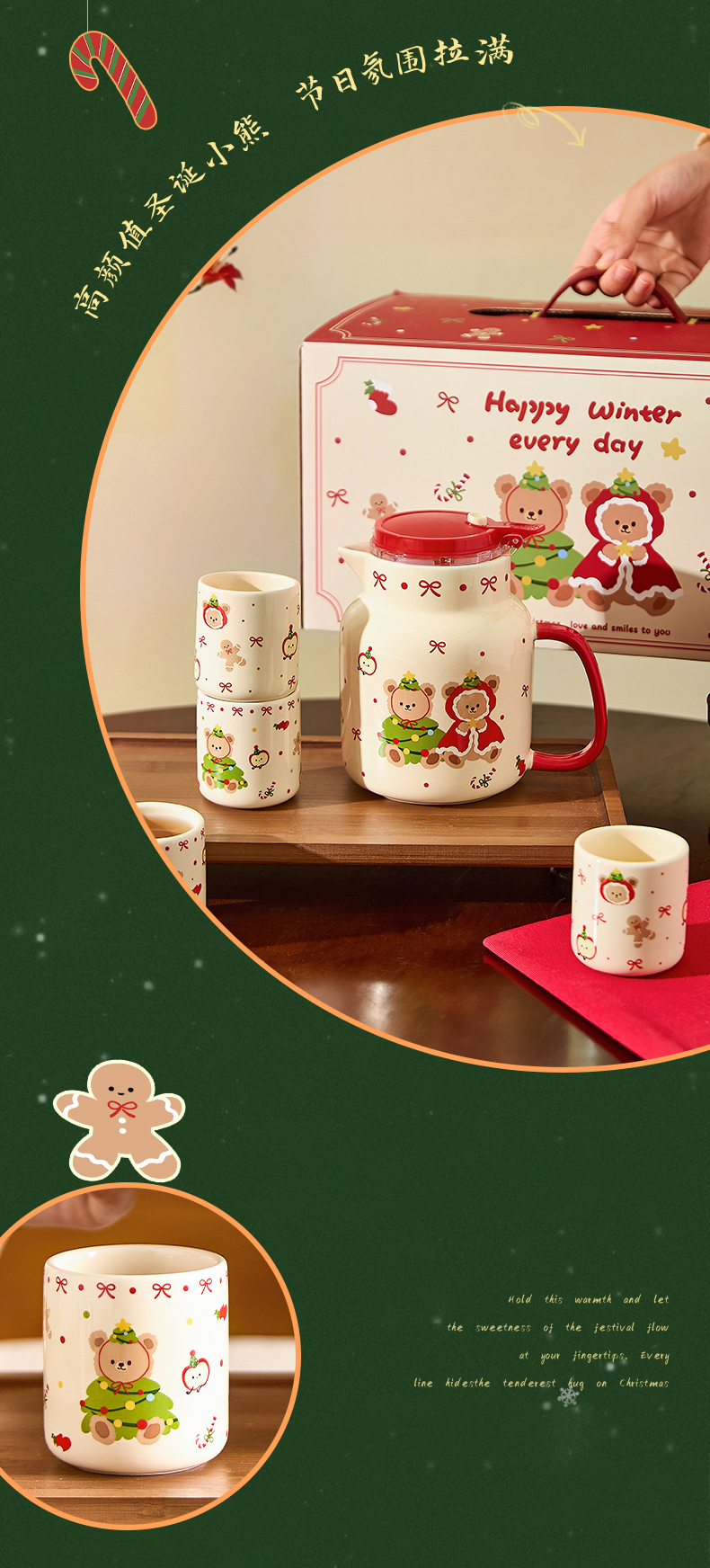 摩登主妇圣诞小熊陶瓷泡茶壶新婚乔迁生日圣诞节礼物家用茶杯可爱茶具套装
