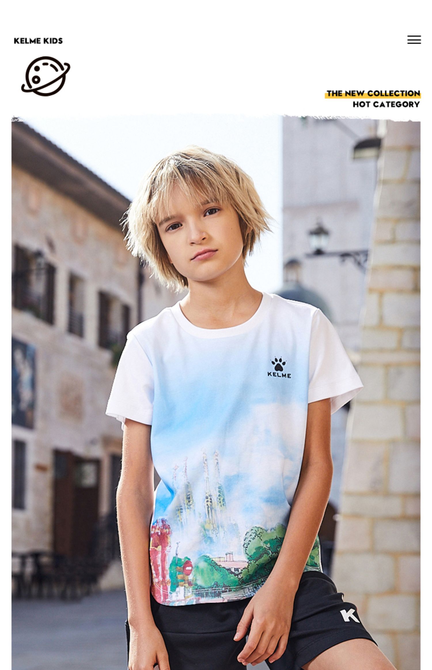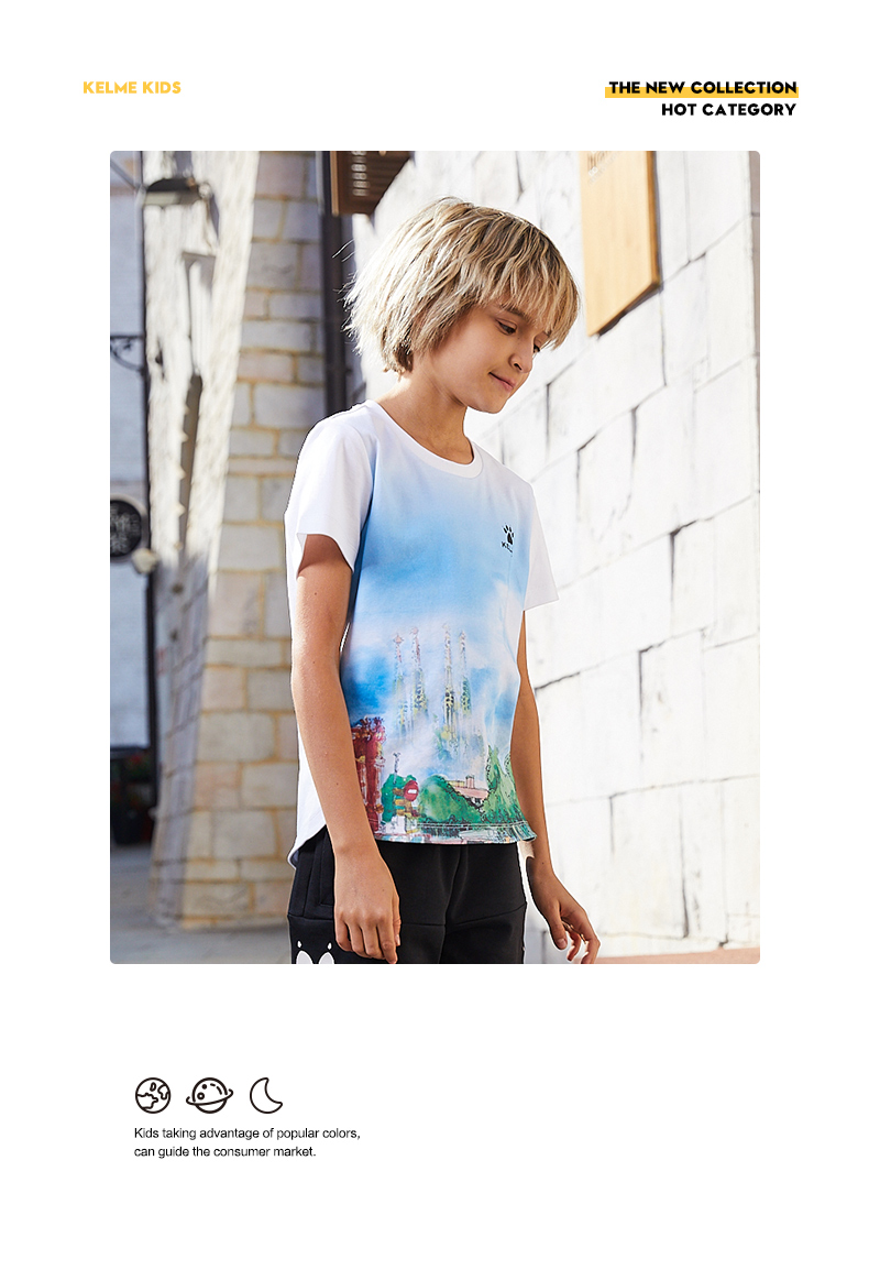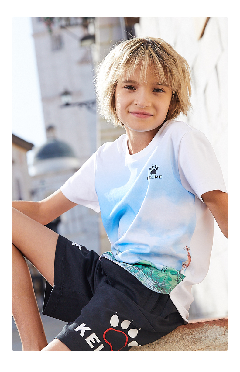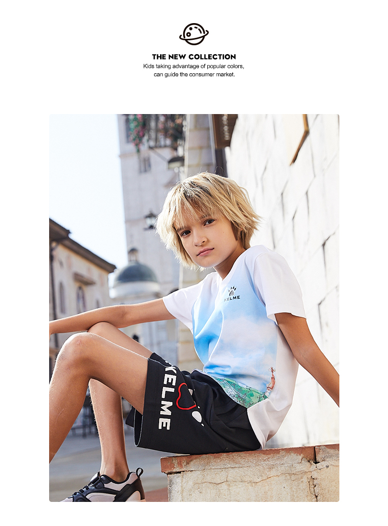 KIDS卡尔美男童短袖T恤新款中童宽松半袖儿童短袖潮印花T恤