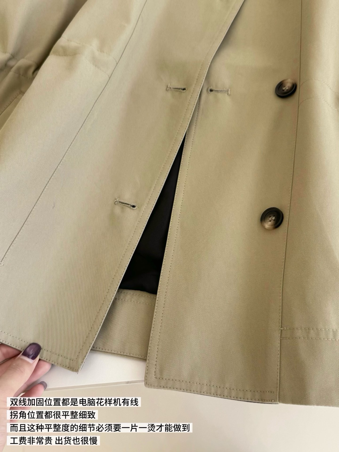后中缝纯手工敲边加固 冲压定型线条笔直不漏线 更显人身姿挺拔有气质