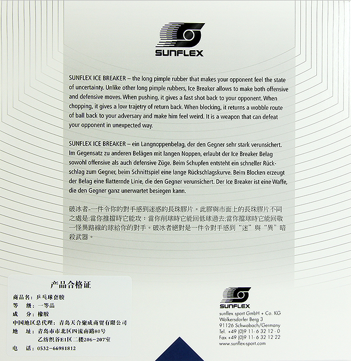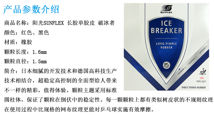 阳光SUNFLEX 破冰者长胶单胶皮 长胶颗粒胶单胶皮