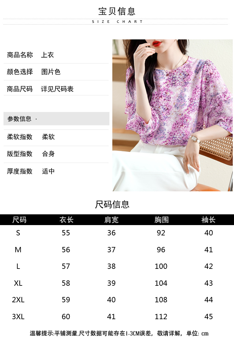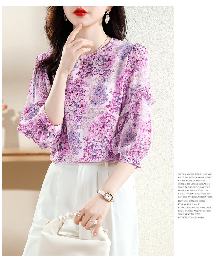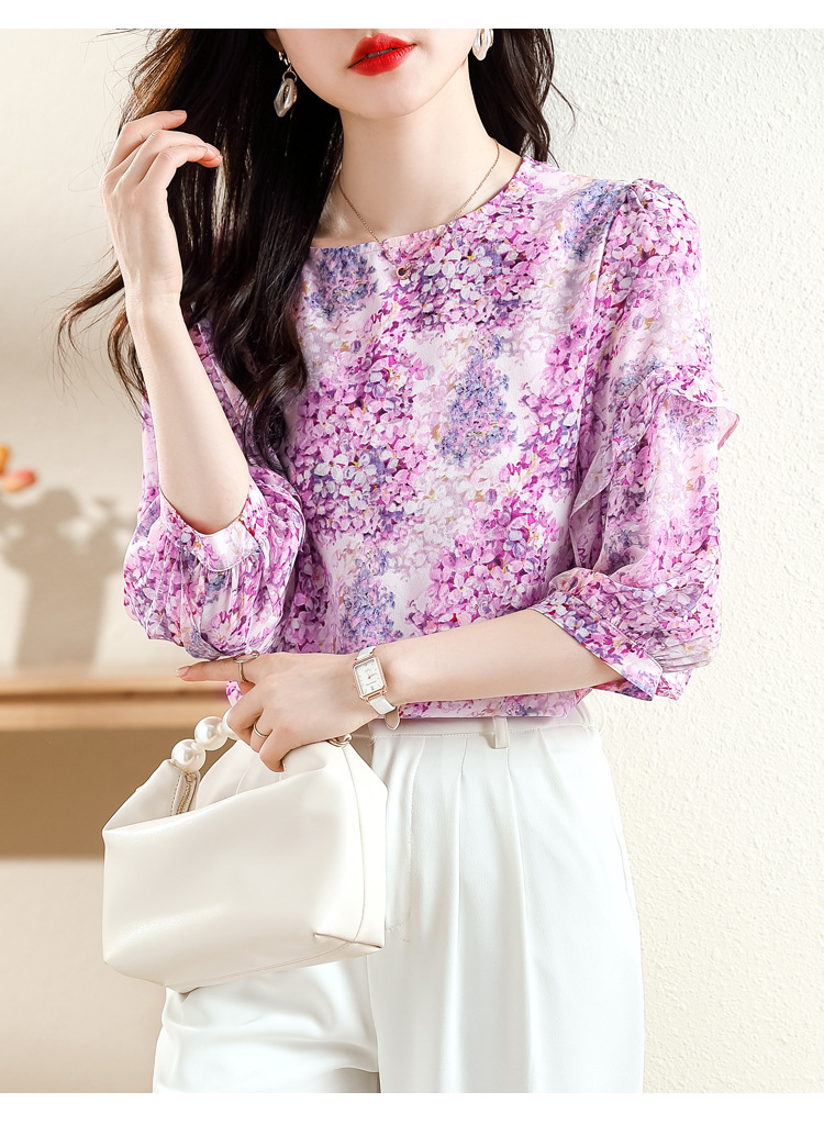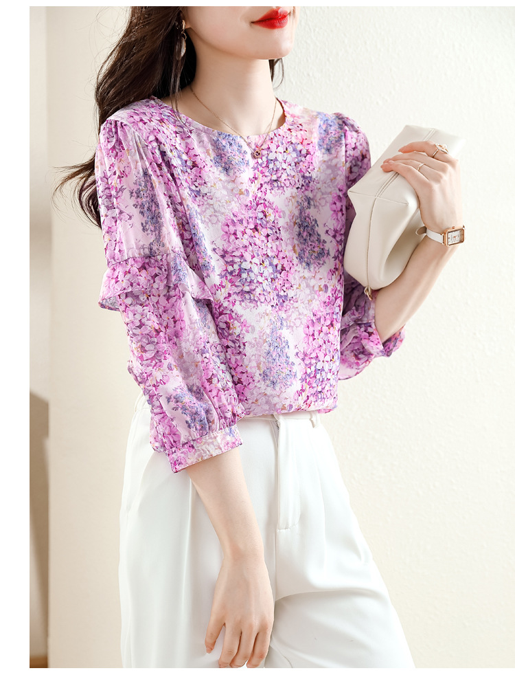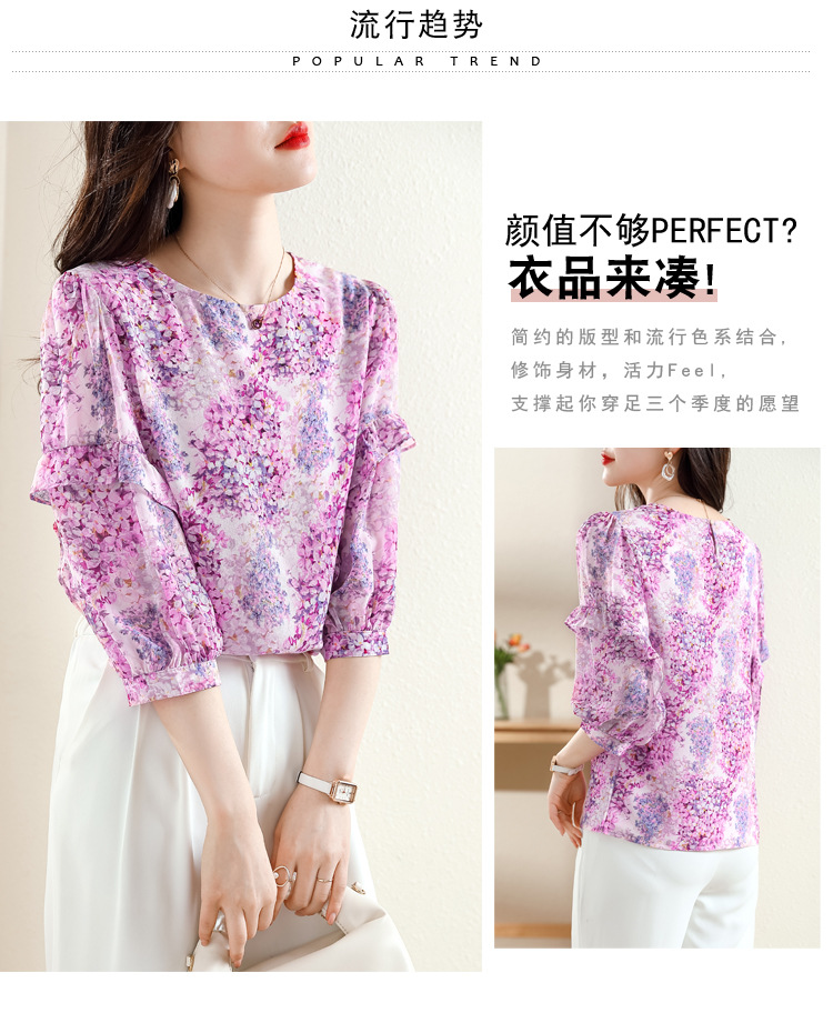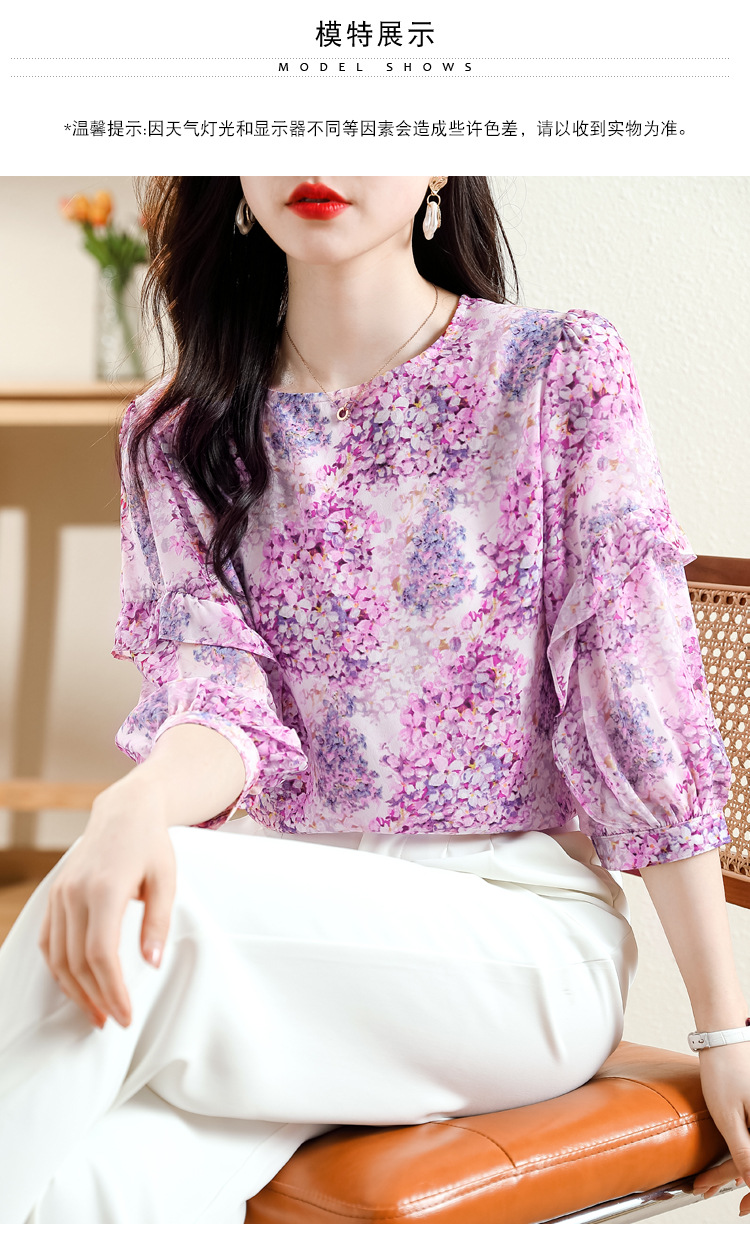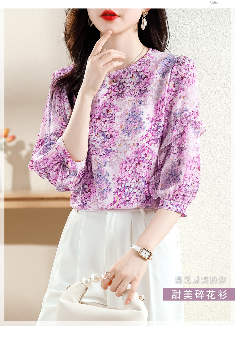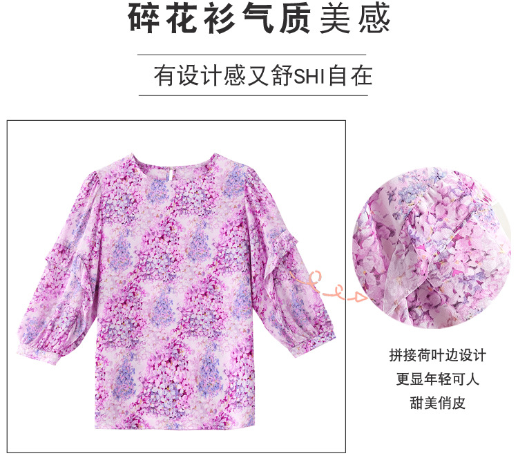 KQL E213N806碎花洋气百搭印花雪纺衫
