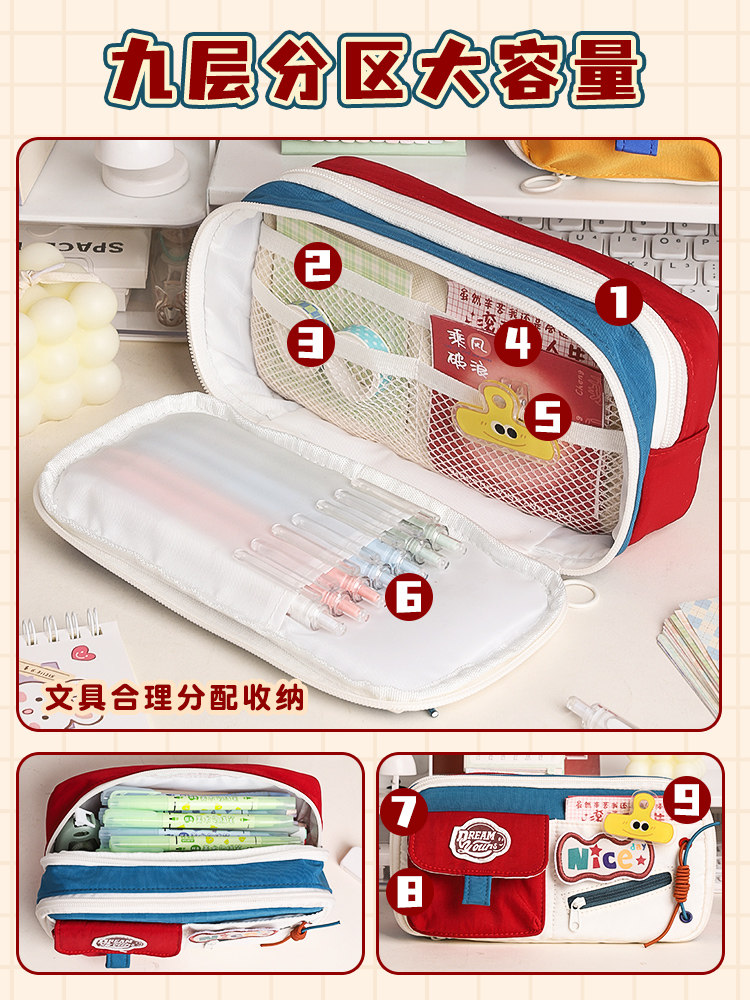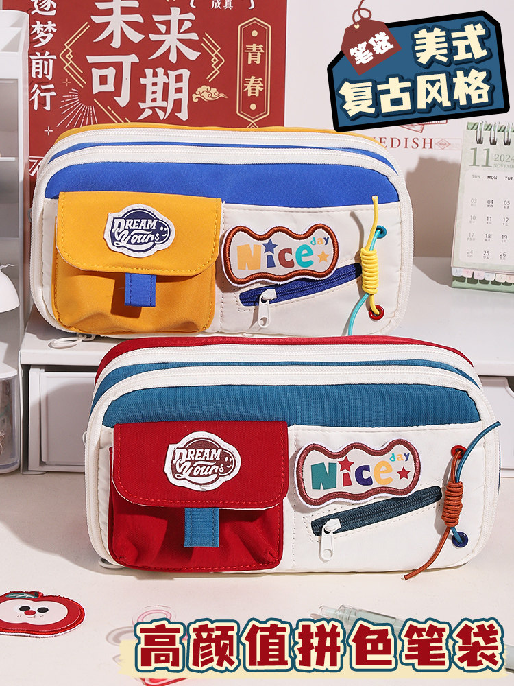 【美式复古笔袋❗九层大容量】新款开学季笔袋小众不撞款初中生高级感铅笔盒复古女孩文具盒笔袋。rg