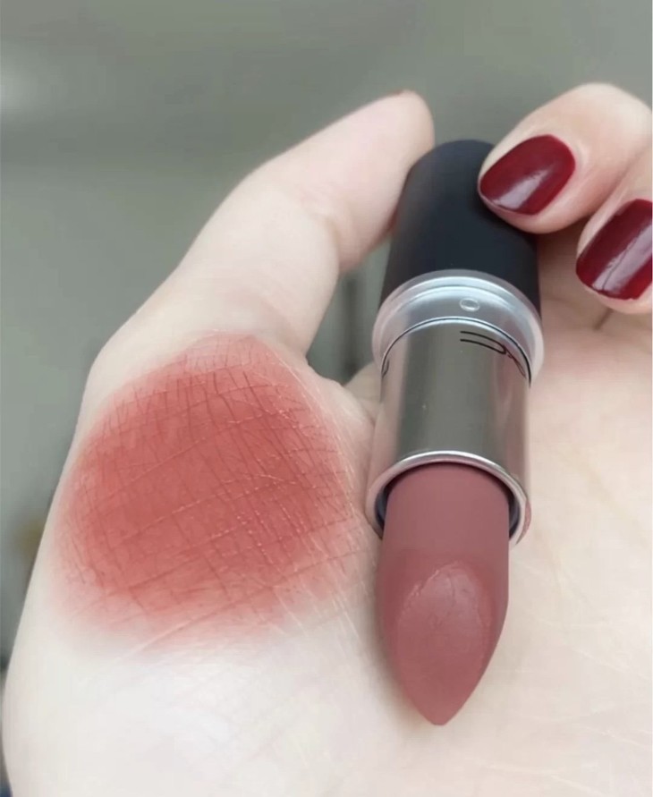 MAC魅可时尚口红#921 SULTRY MOVE👍温油可爱的烤杏仁奶茶色🥤,奶茶橘+蜜桃粉超级适合春夏!无比温柔,让你秒变气质小姐姐🙍。雾面丝绒哑光质感,不干,上嘴饱和度不高,会透出点唇色,是个高级感的奶茶色,很耐看很适合日常出门,🉑日常通勤或欧美妆无压力。