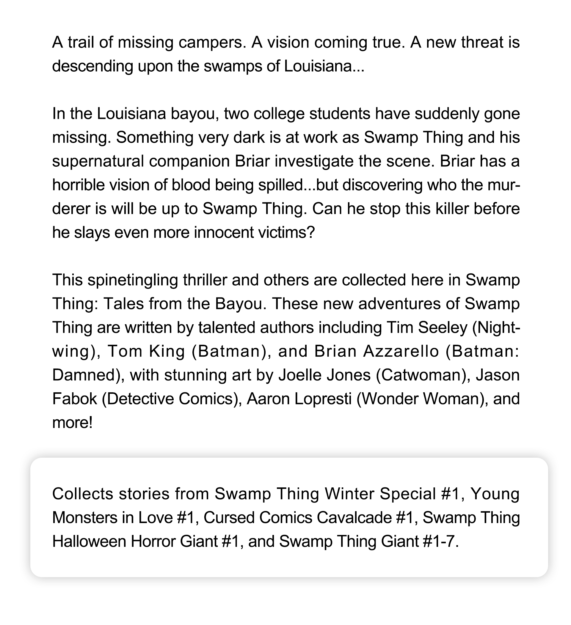 合集 沼泽怪物 河口故事 平装版 Swamp Thing Tales From The Bayou Tp