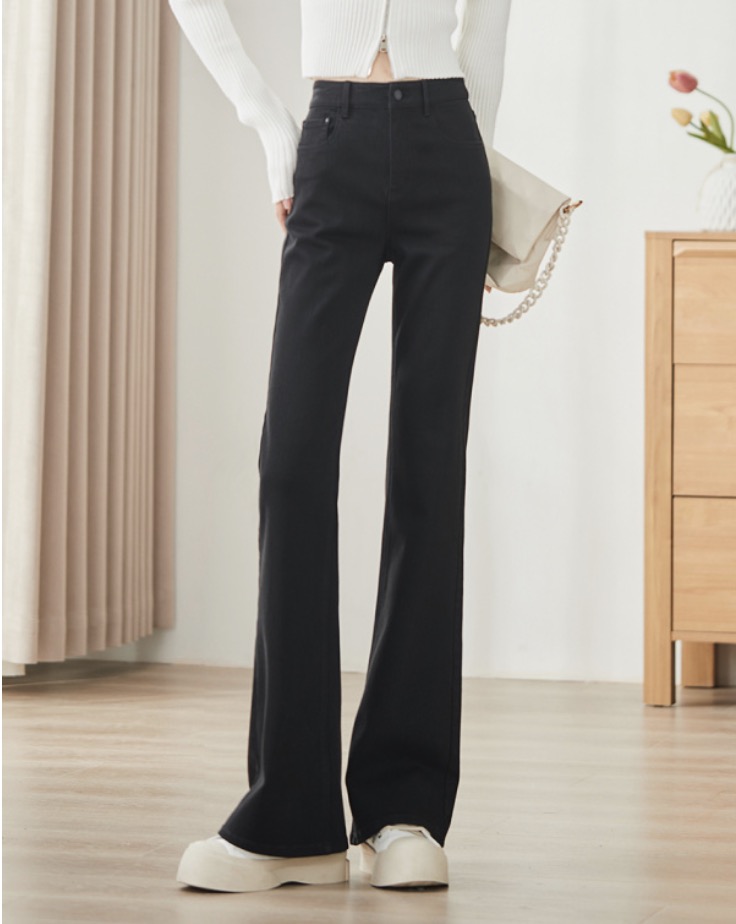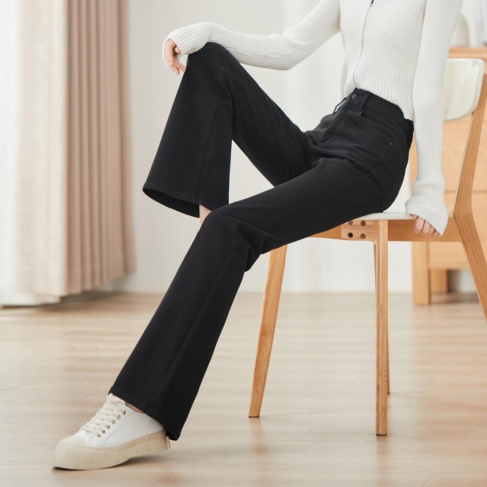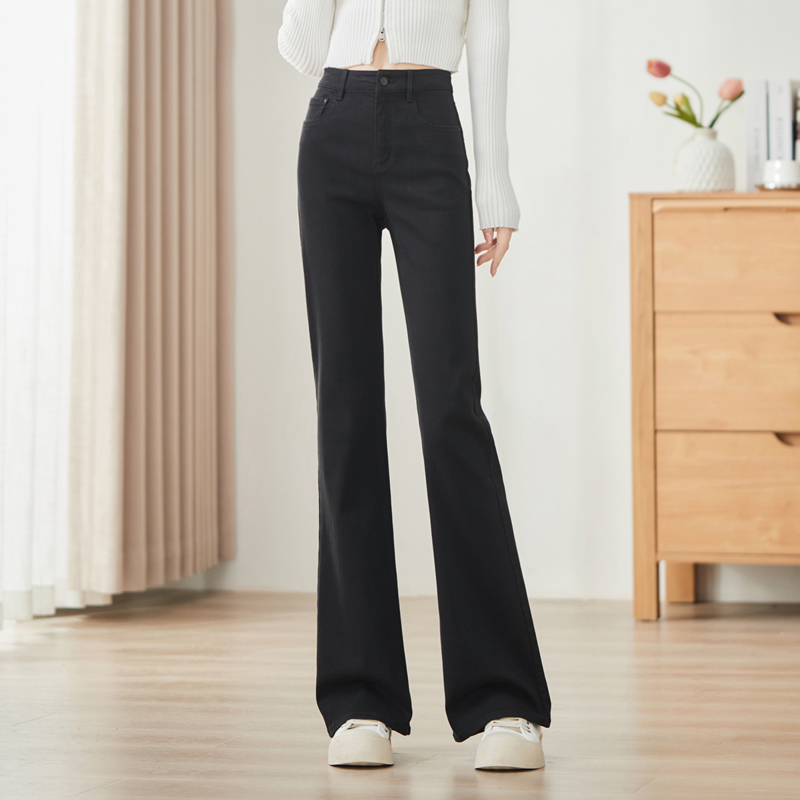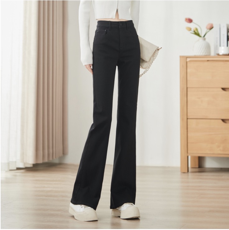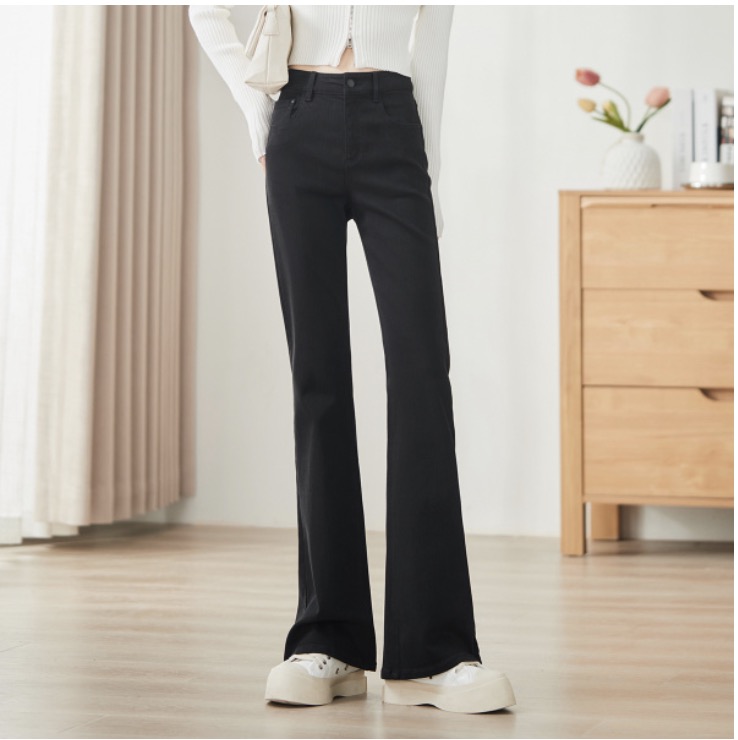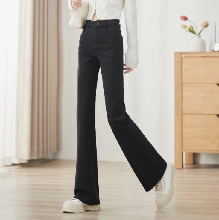 【顺丰包邮】12706 洛诗琳黑色高腰显瘦微喇窄版直筒牛仔裤女1037
