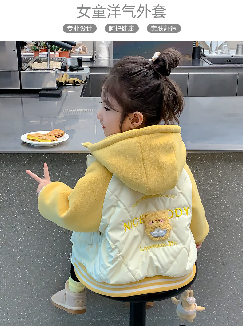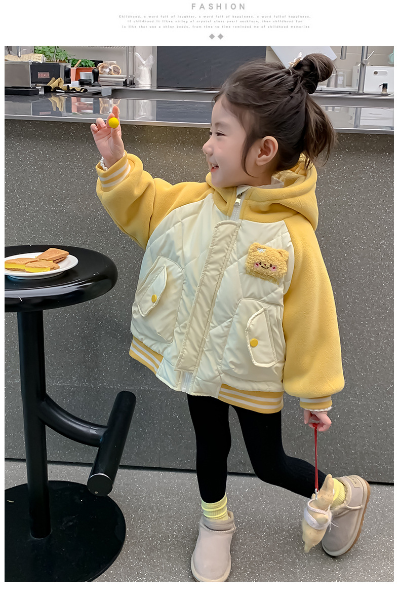 【冬季女宝宝夹棉上衣!时髦又保暖】女童外套秋冬新款 网红炸街儿童冬装 冬季女宝宝夹棉上衣外套-QQ
