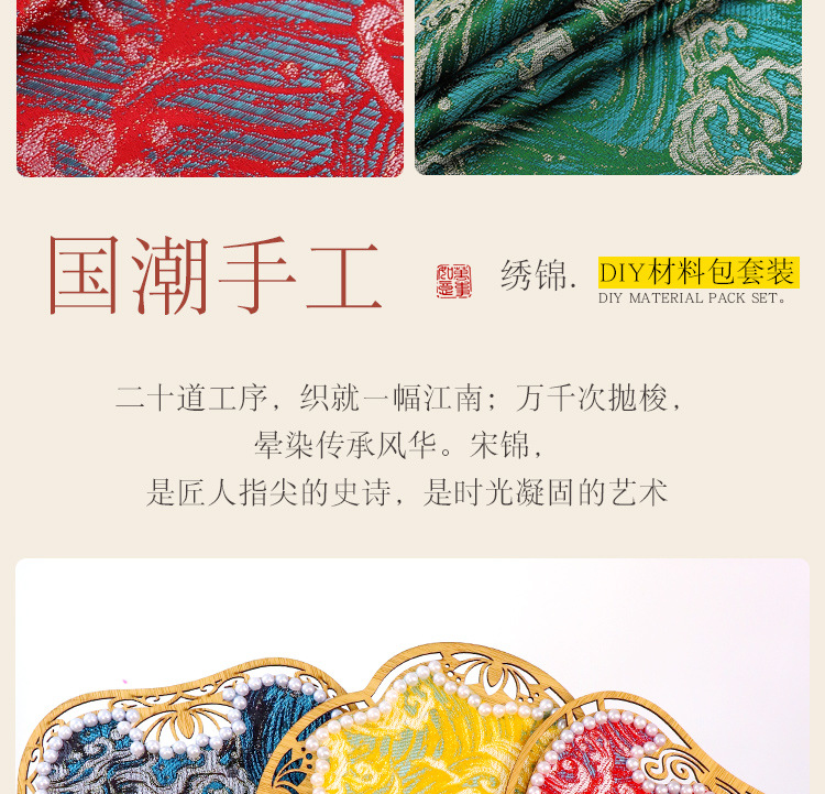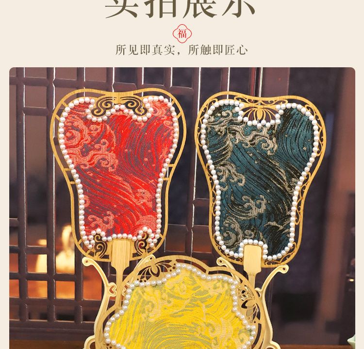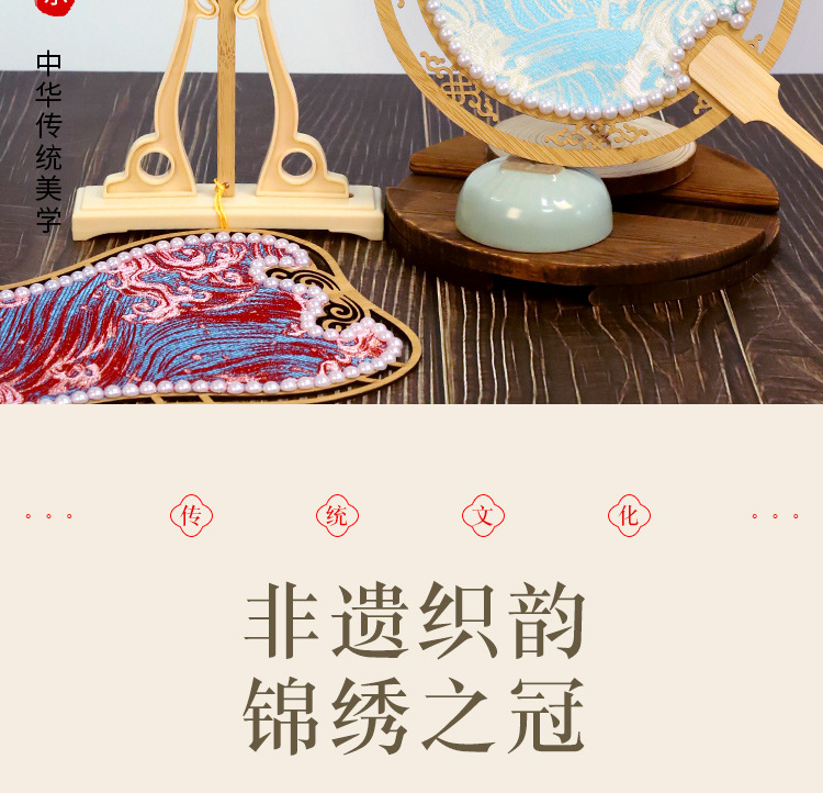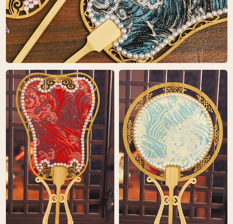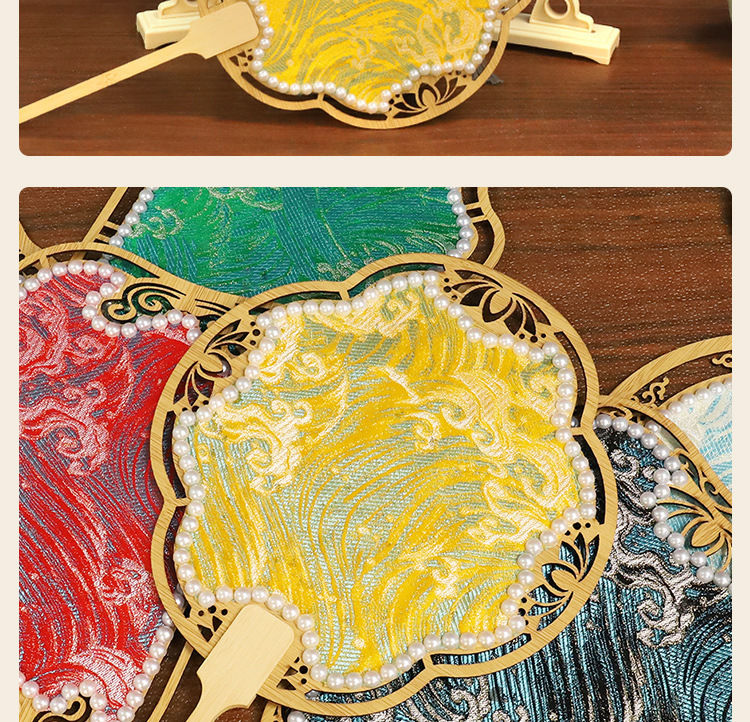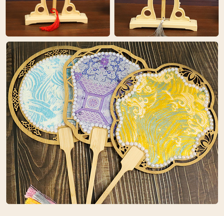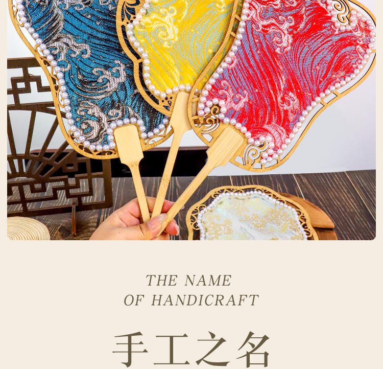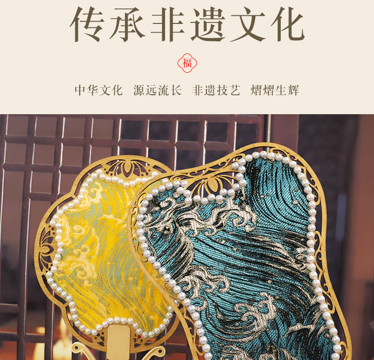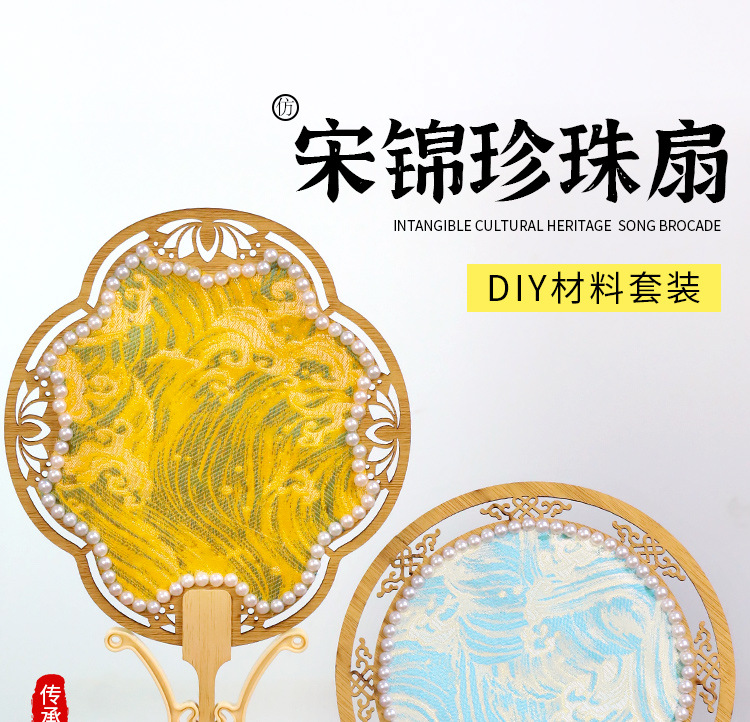 【国风非遗手工】仿宋锦珍珠扇DIY材料包双面珍珠扇古风中国风沙龙团扇团建礼物