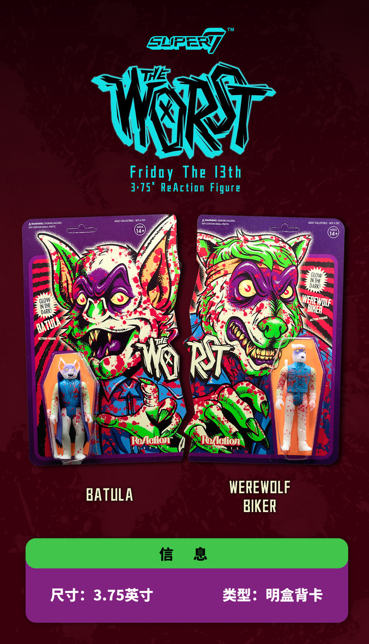 Super7 The Worst Friday the 13th 夜光 复古 挂卡