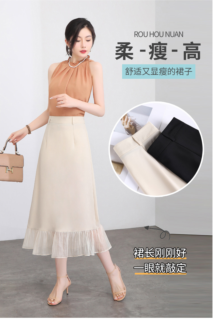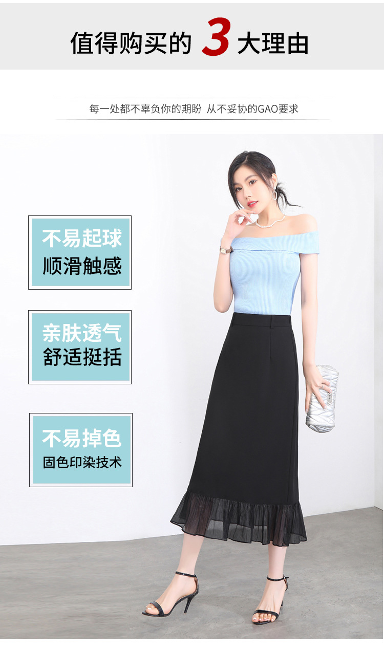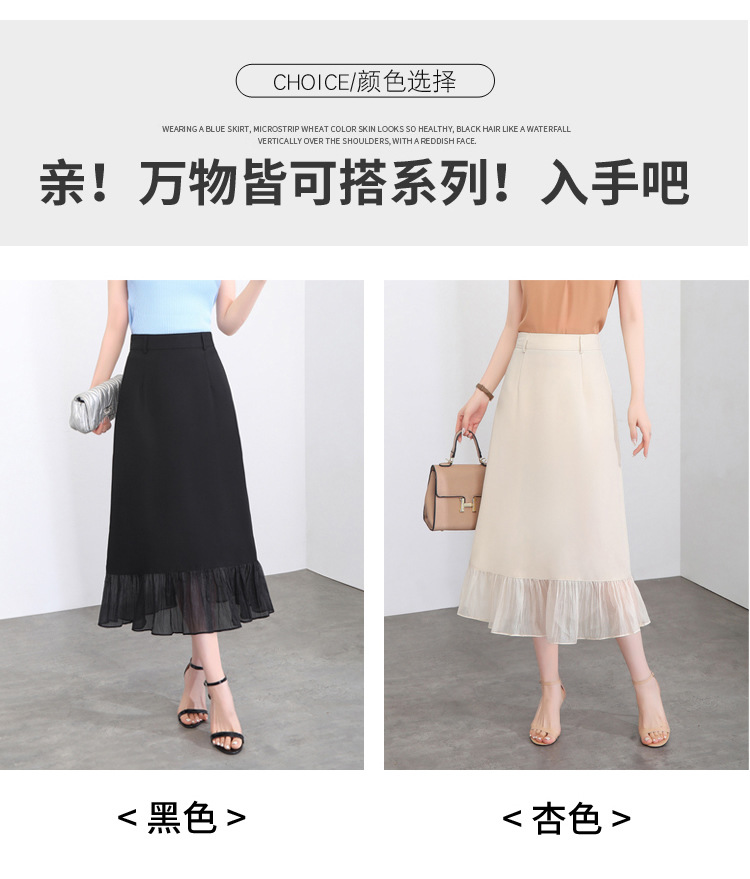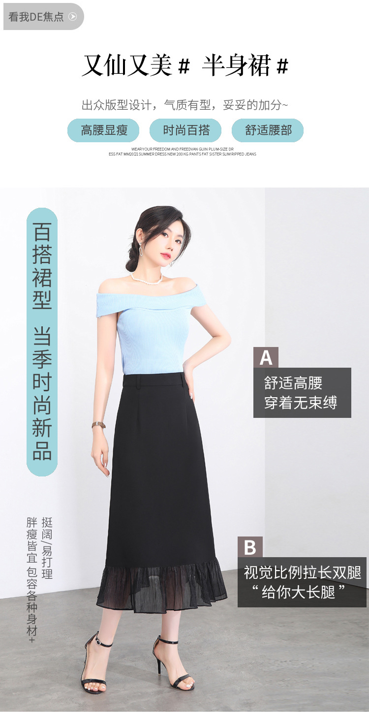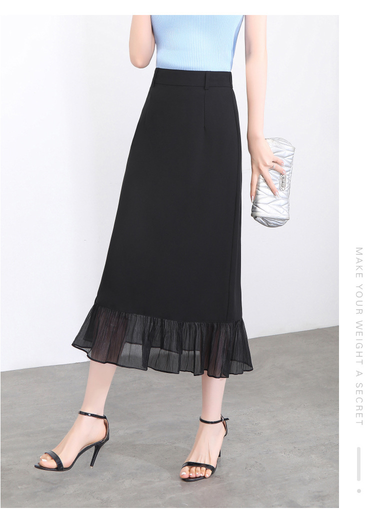修身气质,夏款过膝长款雪纺荷叶边拼接时尚鱼尾裙高腰半身裙MYX-8885