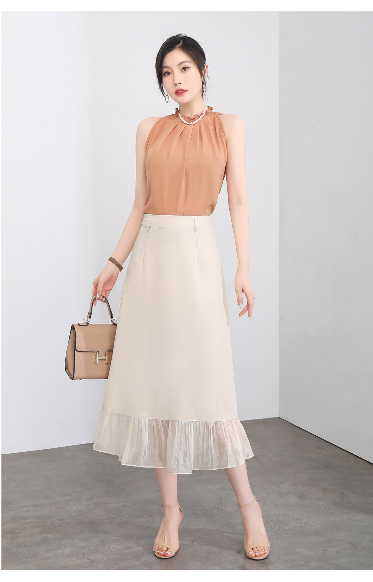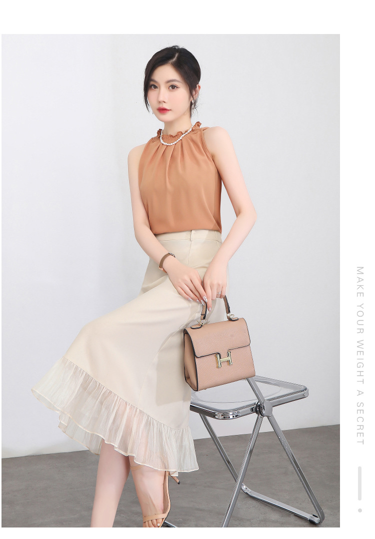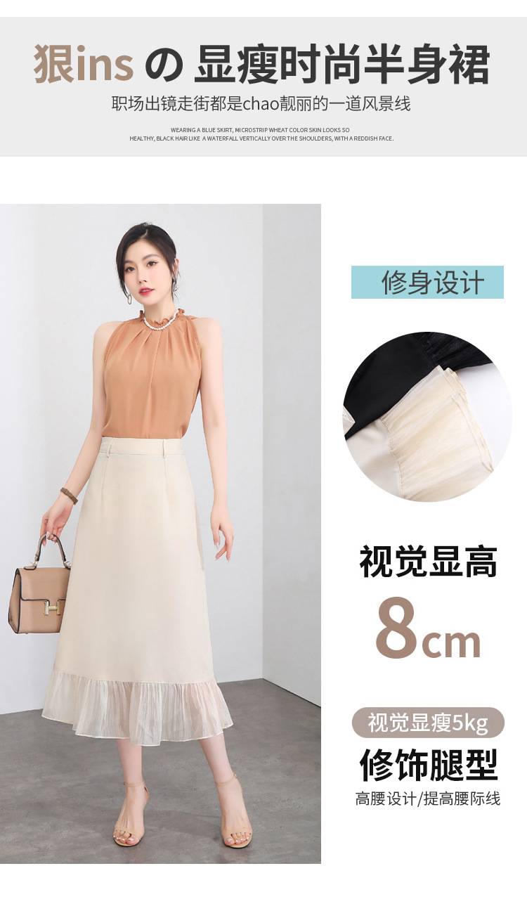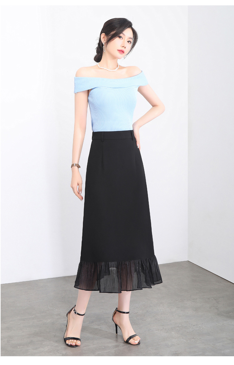 修身气质,夏款过膝长款雪纺荷叶边拼接时尚鱼尾裙高腰半身裙MYX-8885