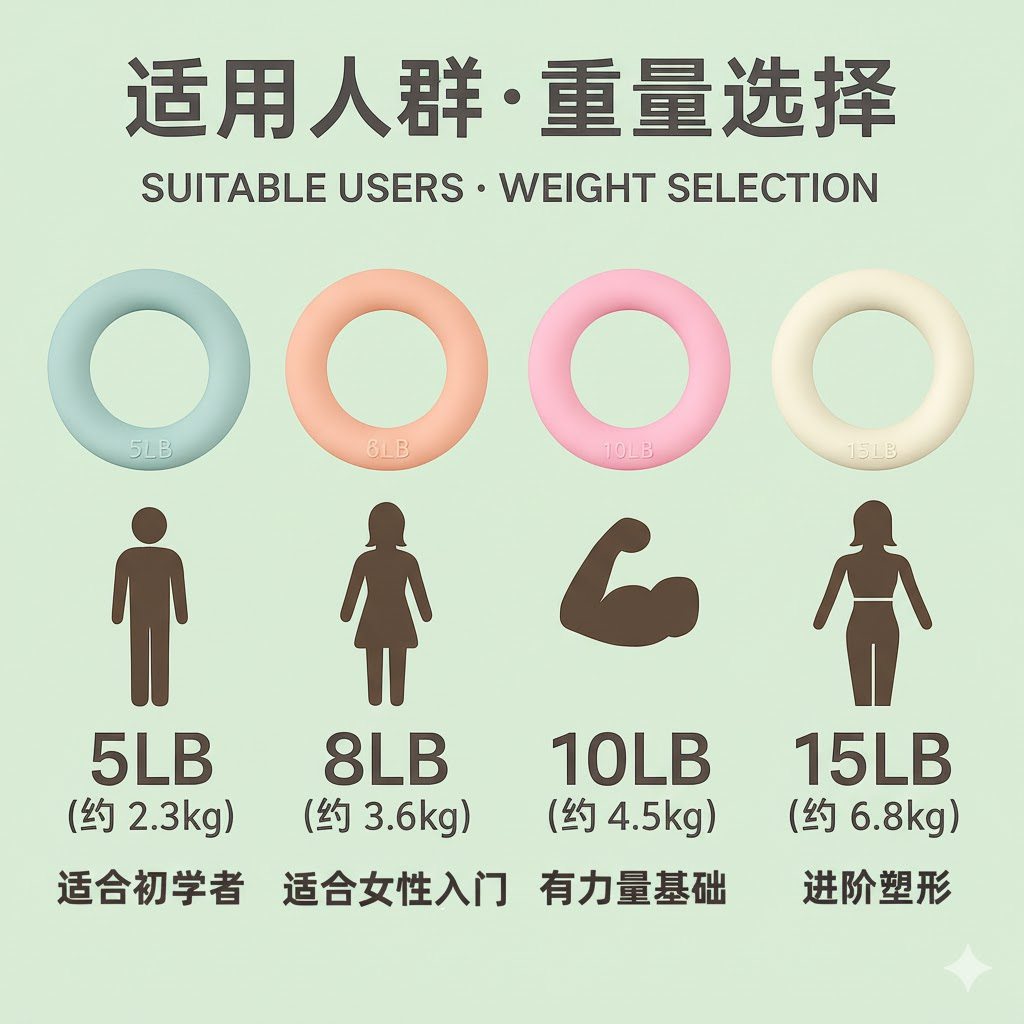 【邮费单独收取】光面款瑜伽负重圆环健身负重环硅胶材料喷手感油5磅 10磅(需要排单,急单慎拍)