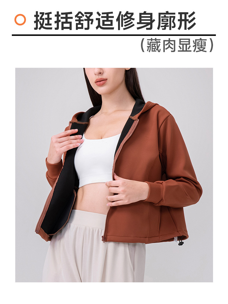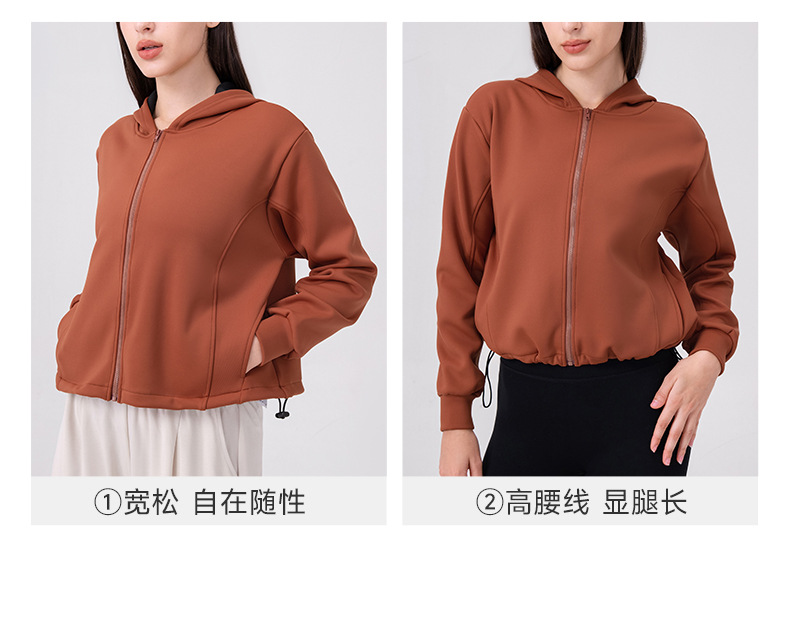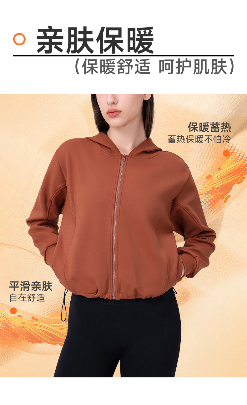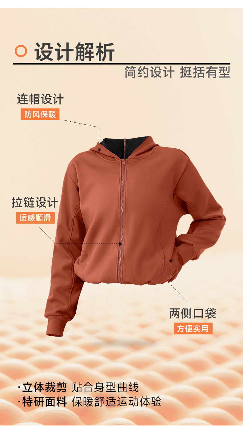 跃牌【欲动春风】系列 秋冬加绒瑜伽外套连帽衫拉链宽松休闲运动上衣保暖健身外套32623