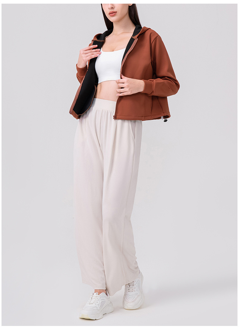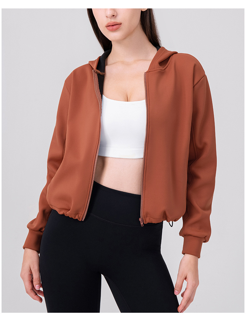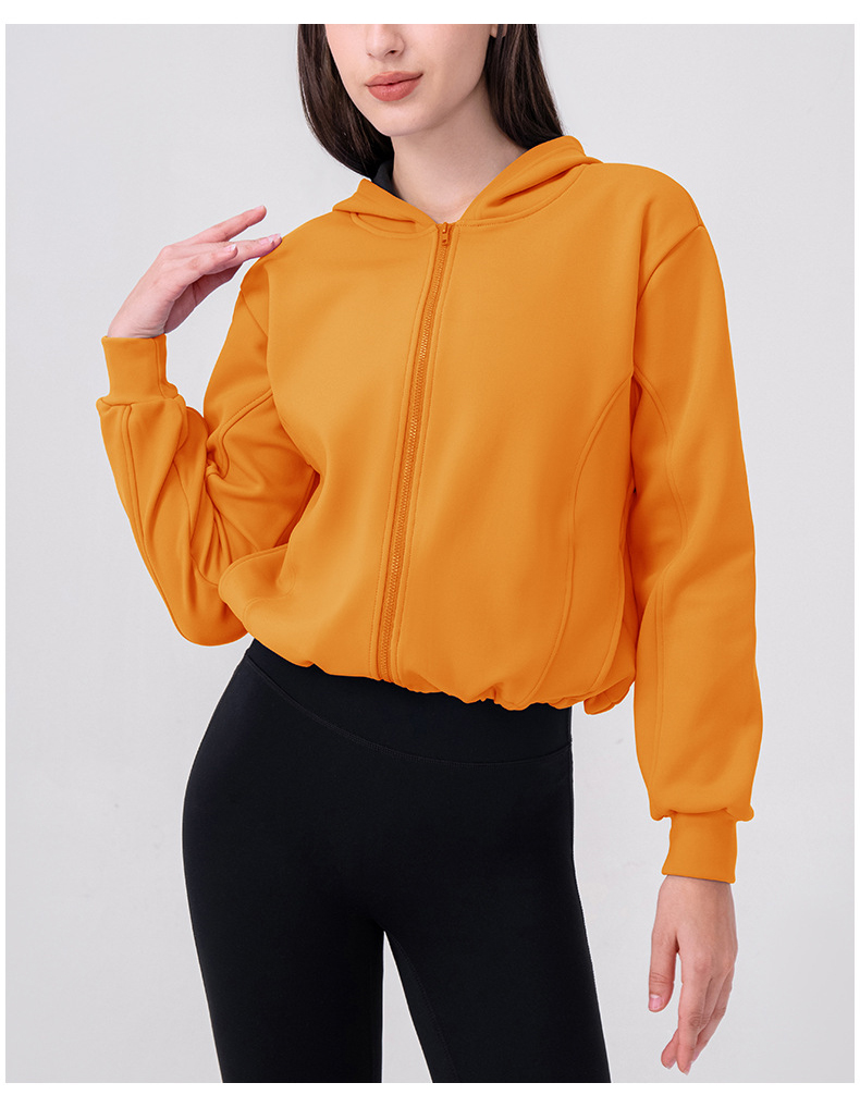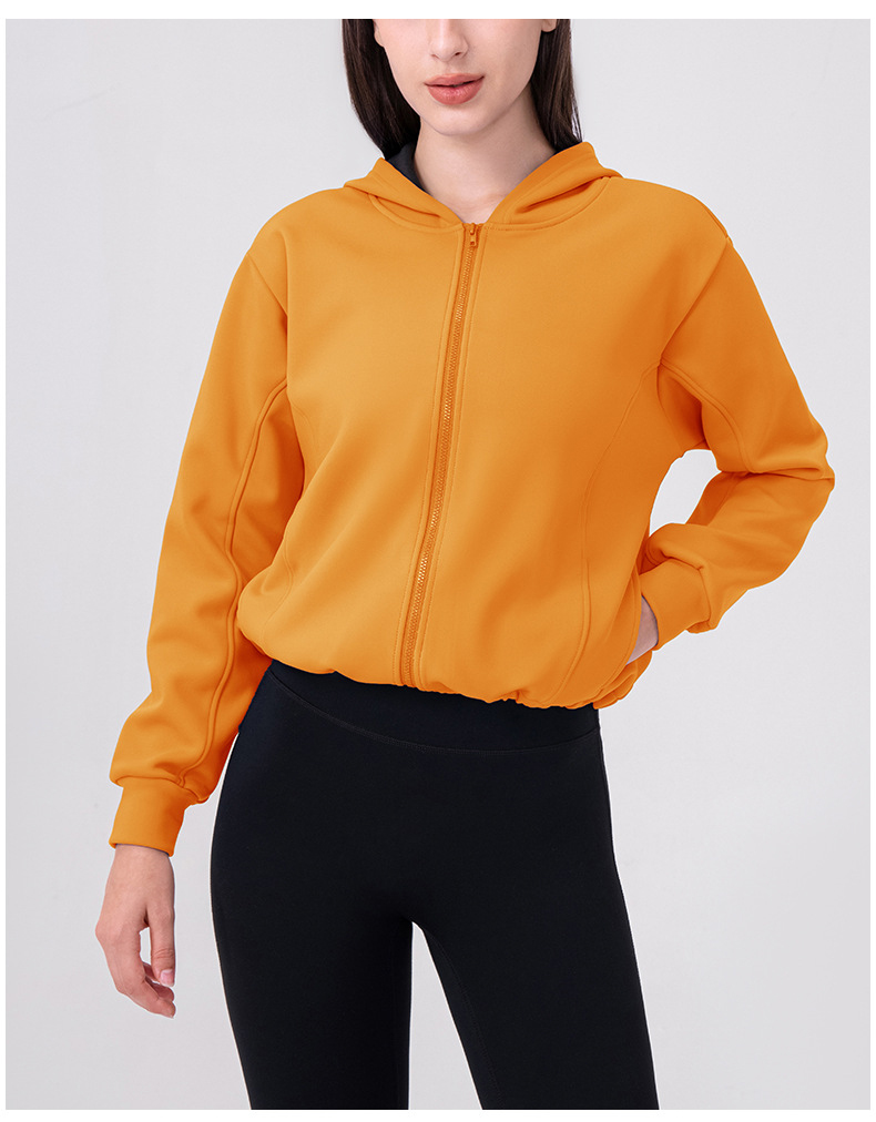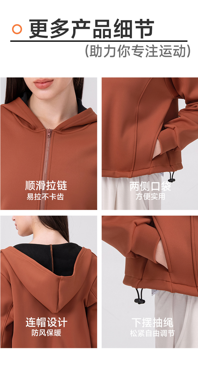 跃牌【欲动春风】系列 秋冬加绒瑜伽外套连帽衫拉链宽松休闲运动上衣保暖健身外套32623