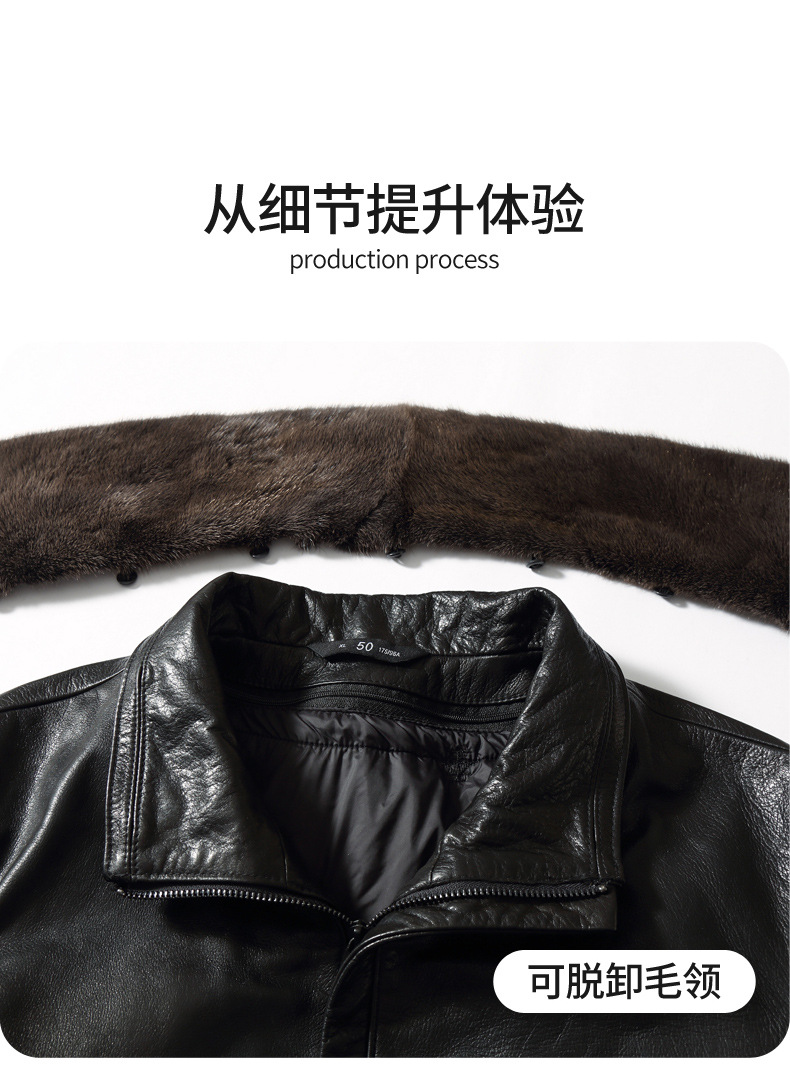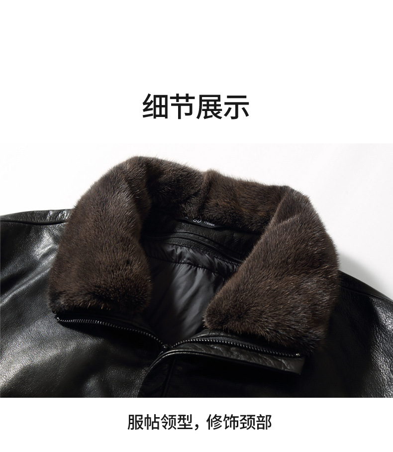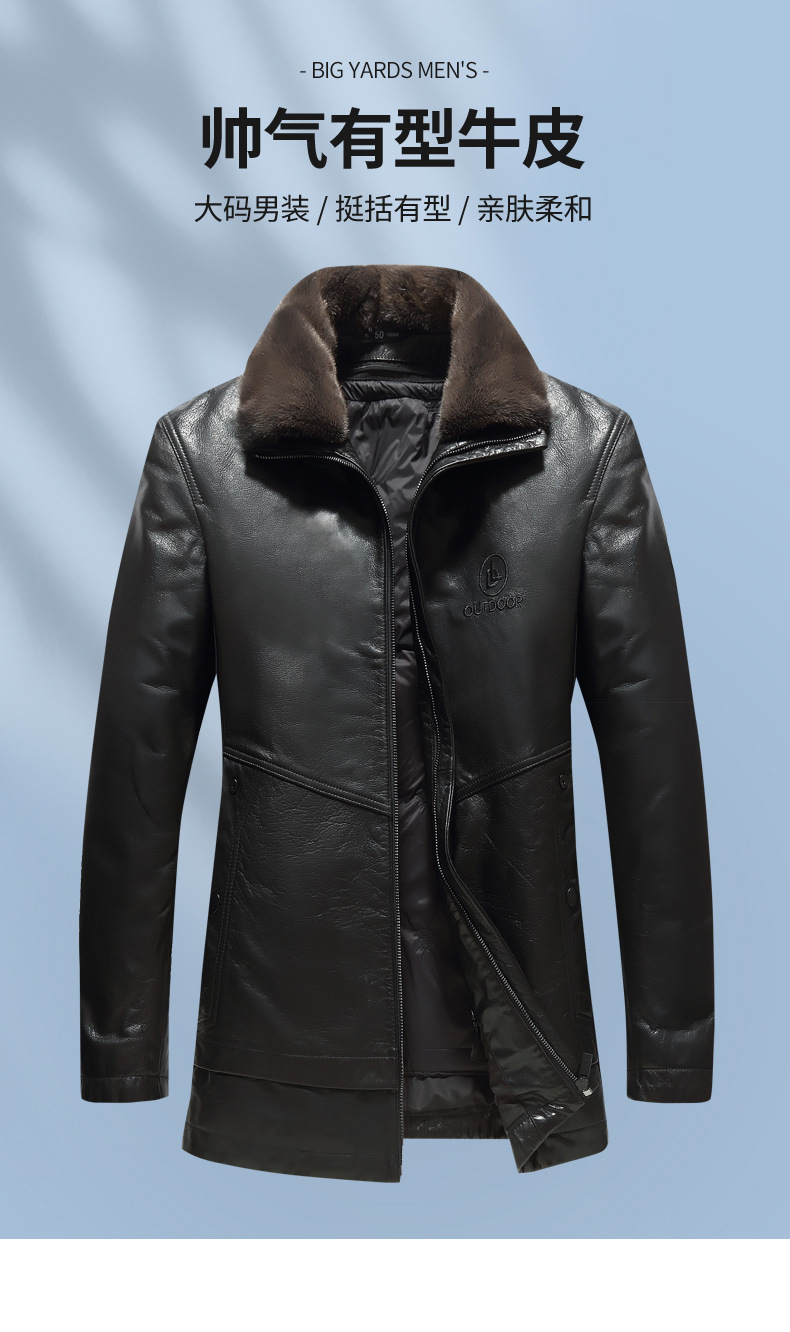 【真皮DSZ】【内胆可拆卸】大依优型大码牛皮貂毛领棉衣皮外套休闲简约大号皮夹克真皮皮草加肥加大