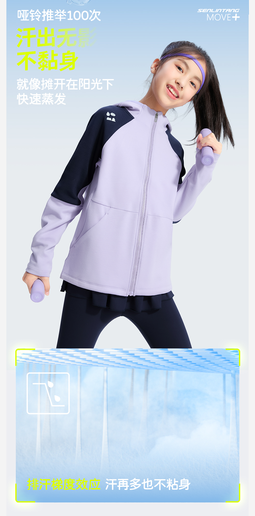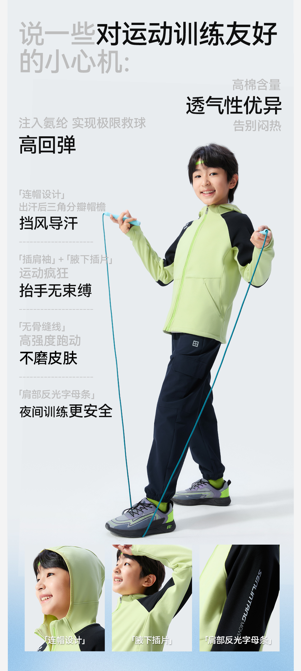 【乐我行综训运动外套】森林棠26春款 儿童吸湿排汗运动插肩袖连帽外套61253047 商品图5