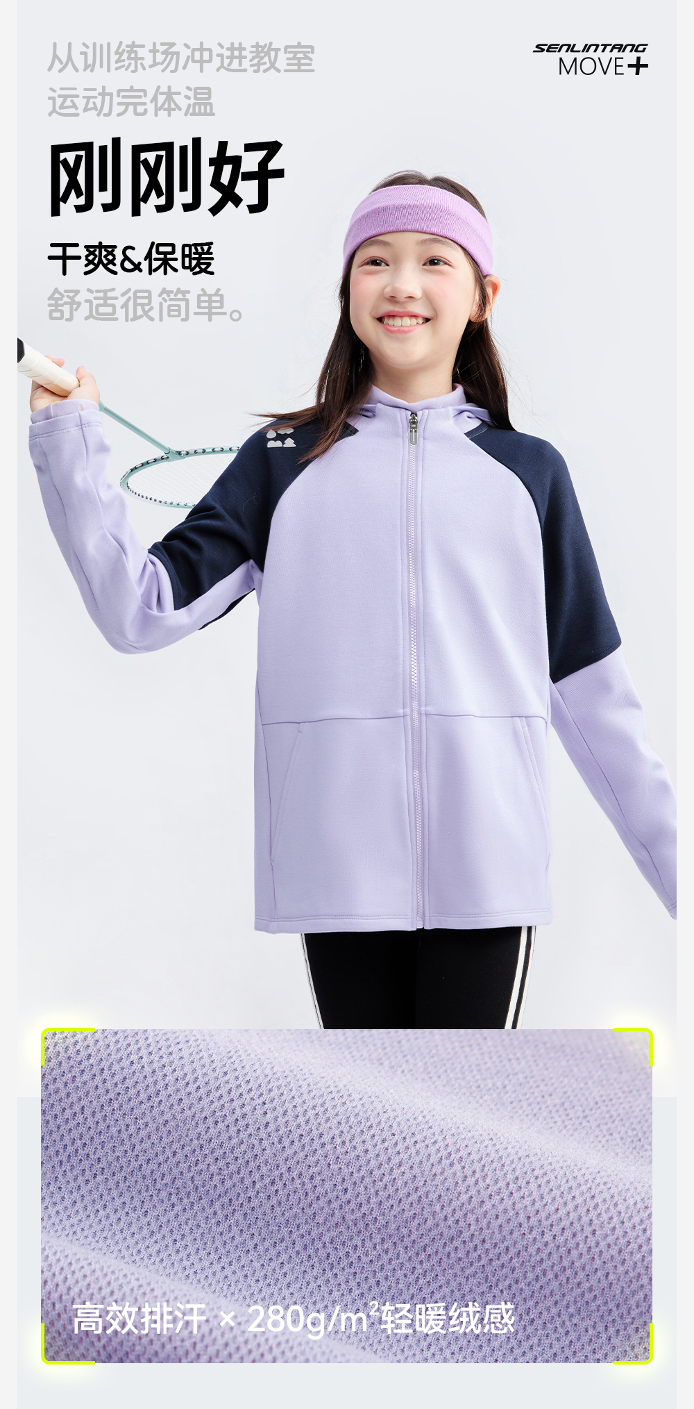 【乐我行综训运动外套】森林棠26春款 儿童吸湿排汗运动插肩袖连帽外套61253047 商品图4