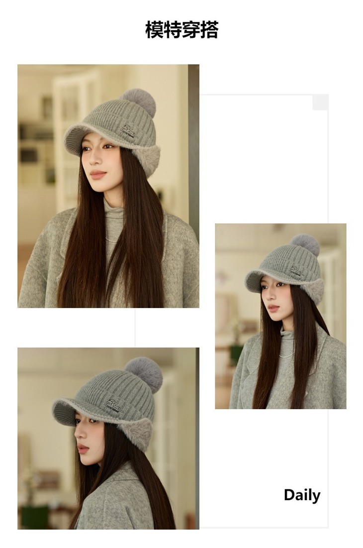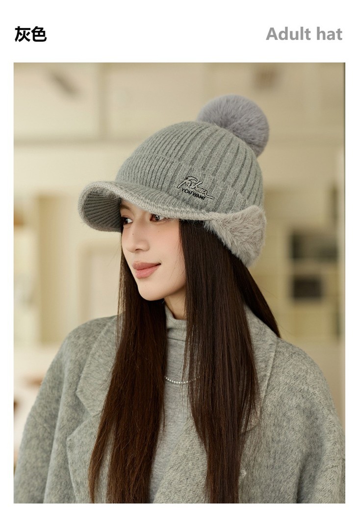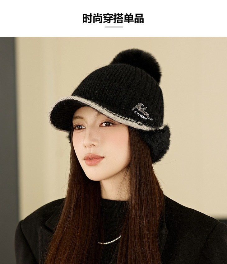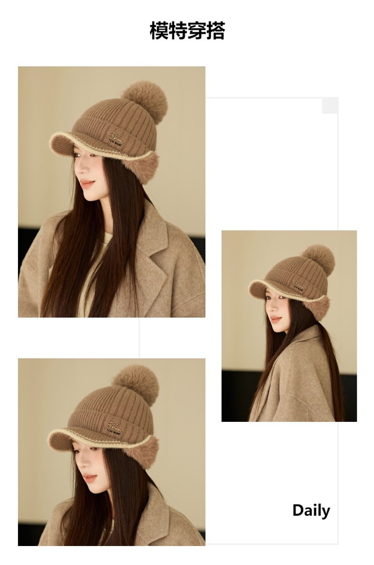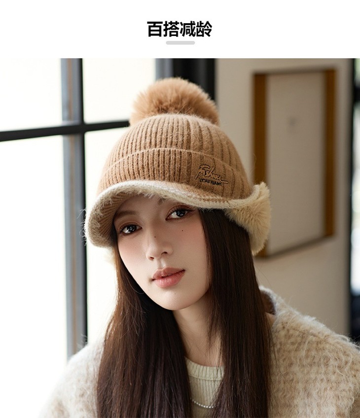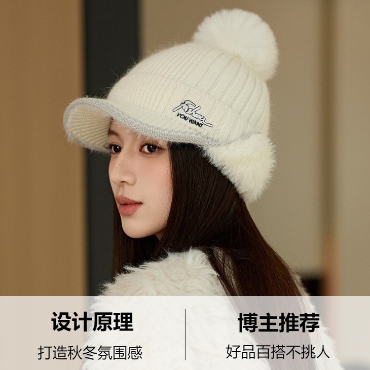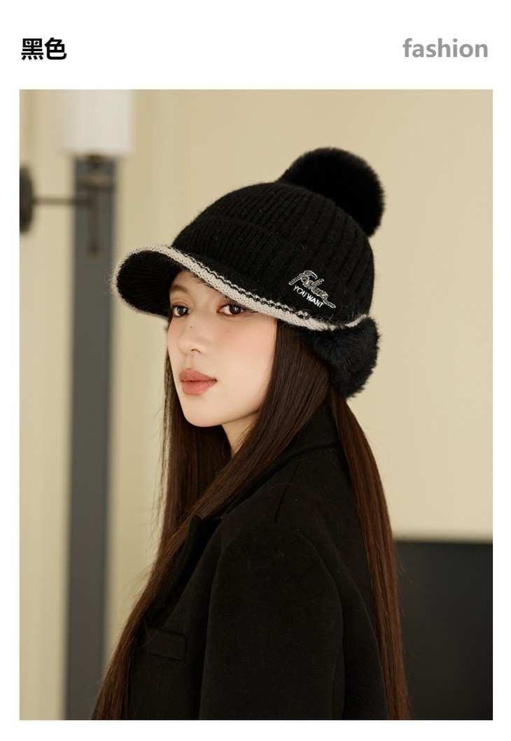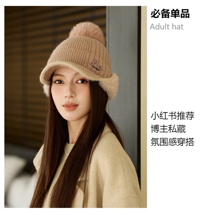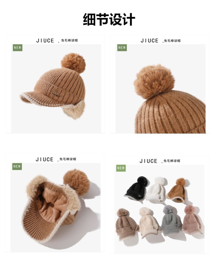 兔毛帽秋冬加厚毛球针织帽,韩国纯色百搭休闲耳包棒球帽JCM3204