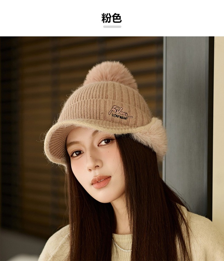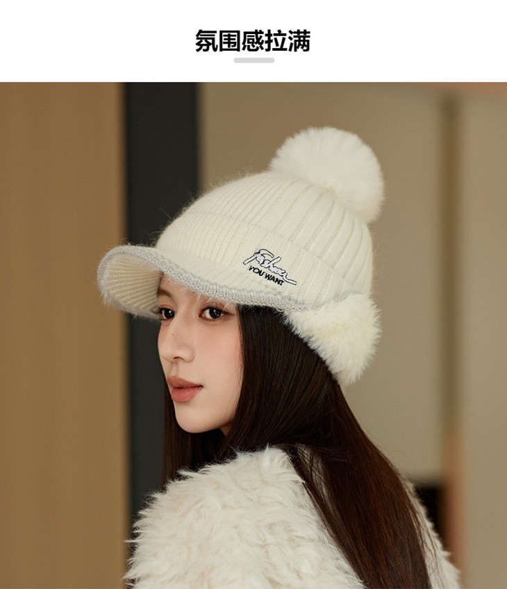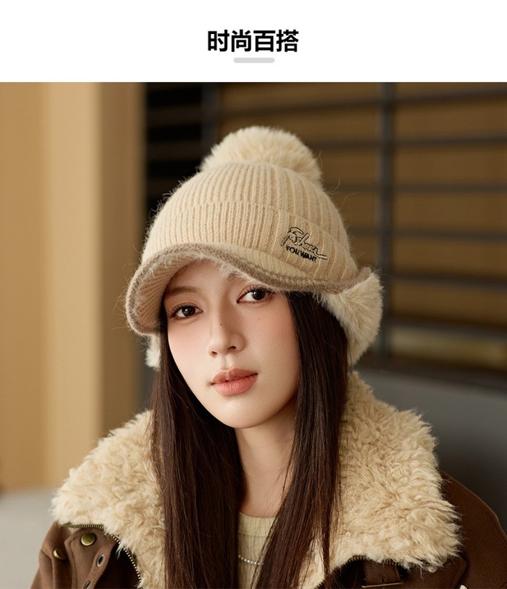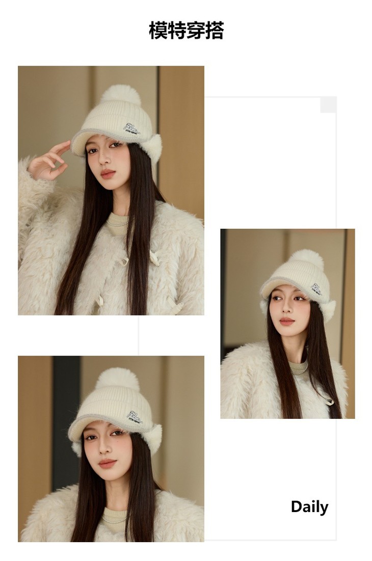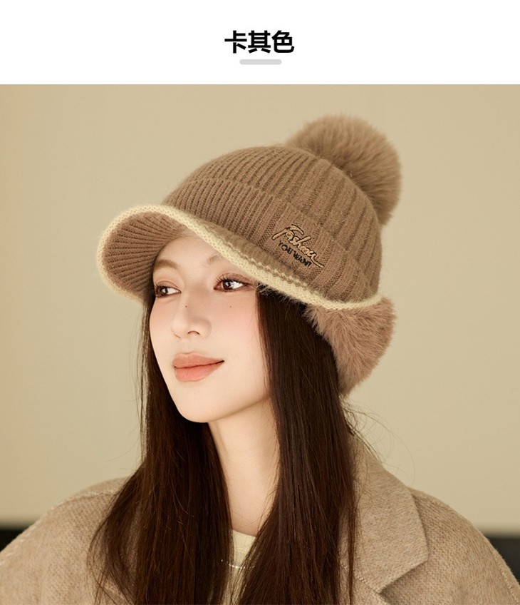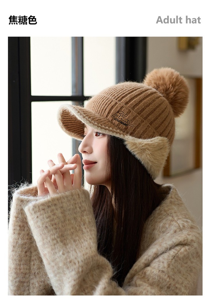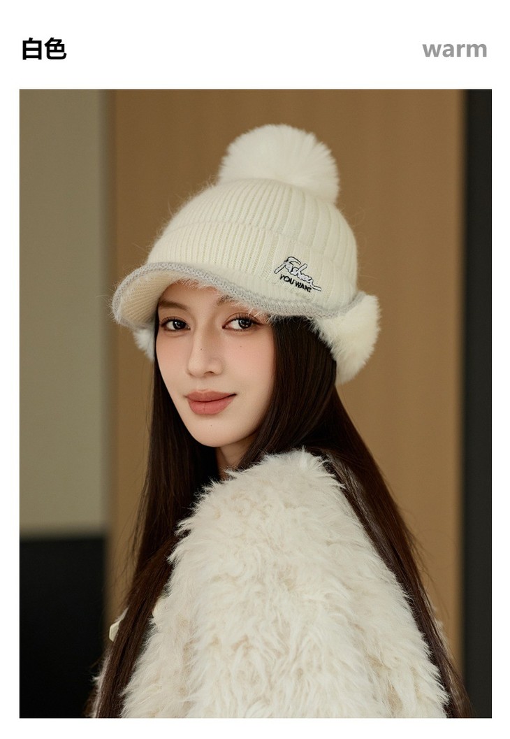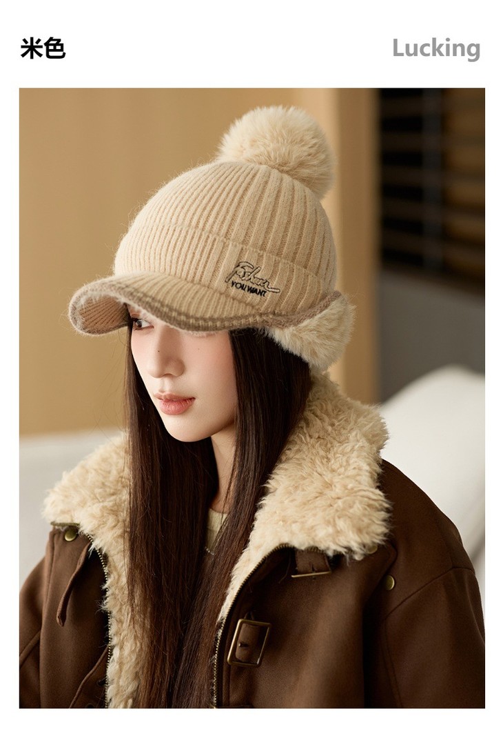兔毛帽秋冬加厚毛球针织帽,韩国纯色百搭休闲耳包棒球帽JCM3204