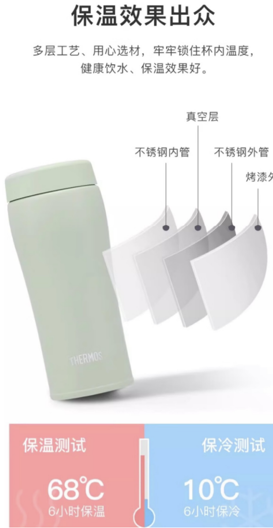 膳魔师 旋盖保温杯新品简约小清新磨砂弧线杯TCOL-360