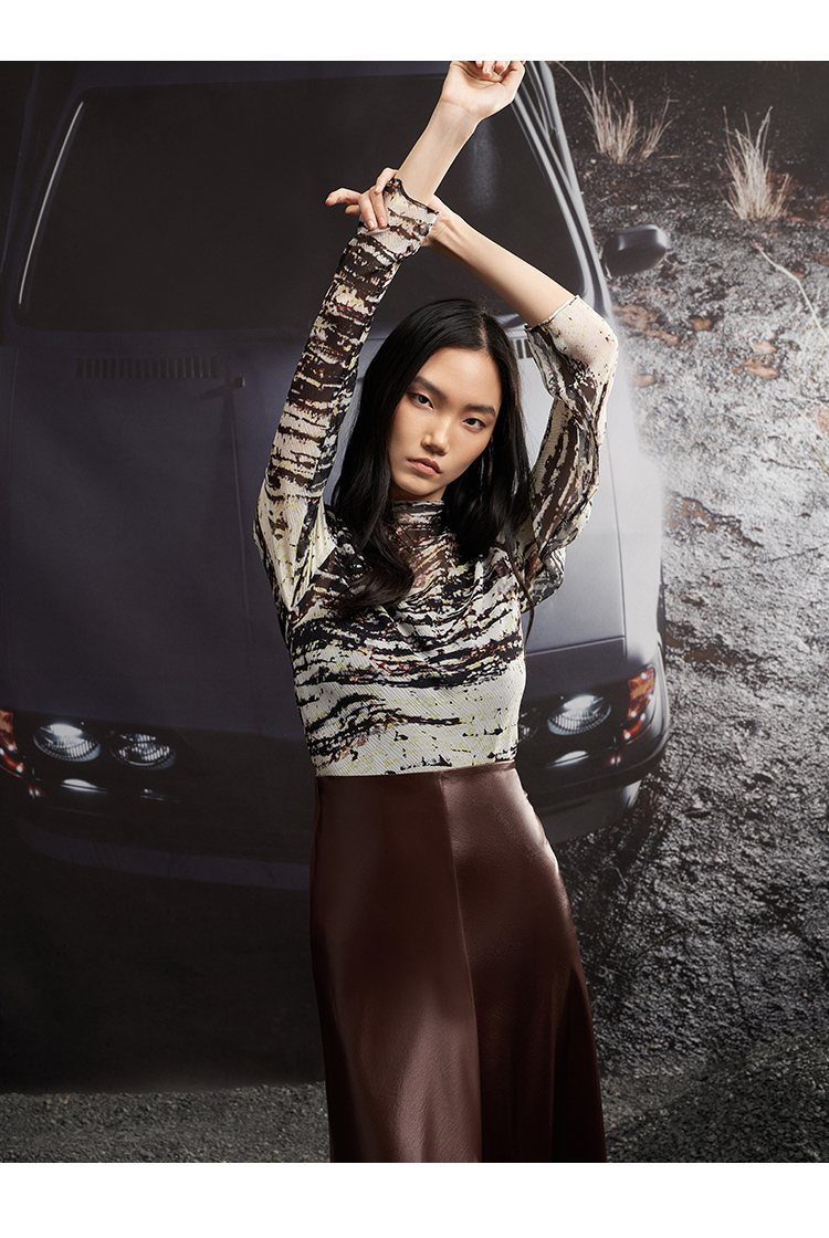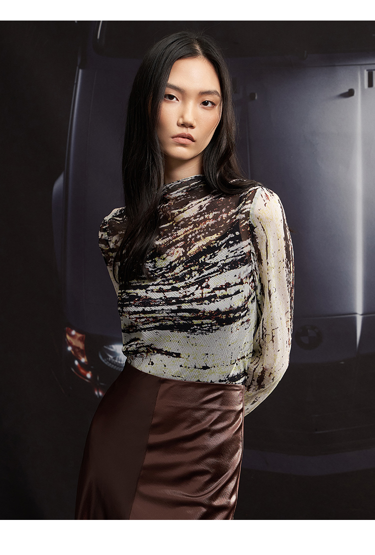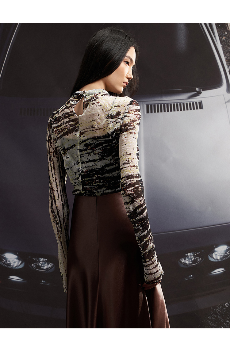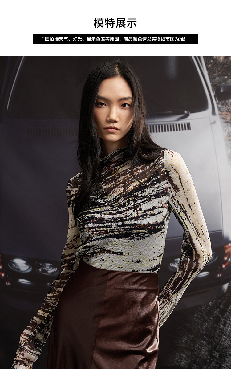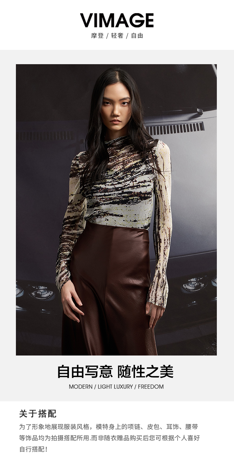 VIMAGE纬漫纪秋季新款洋气复古印花显瘦女小上衣V1813403