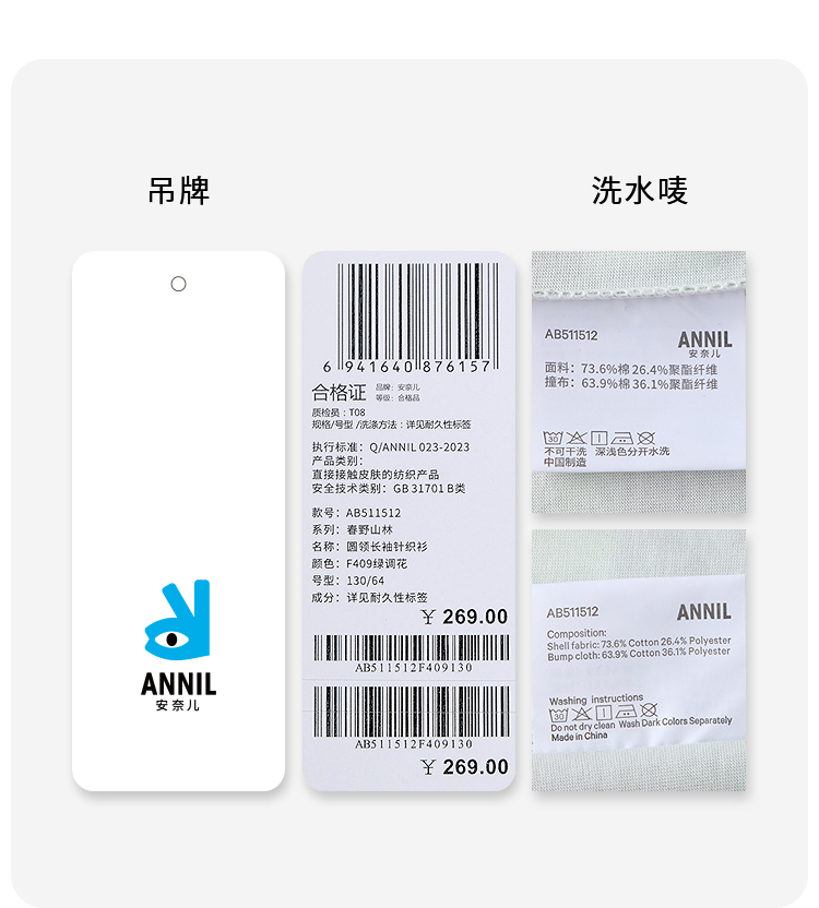男童圆领长袖针织衫春季新款安奈儿童装实体店同款AB511512