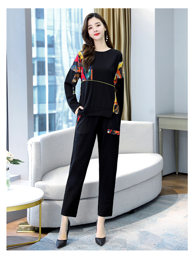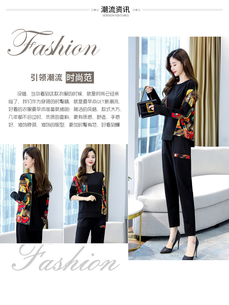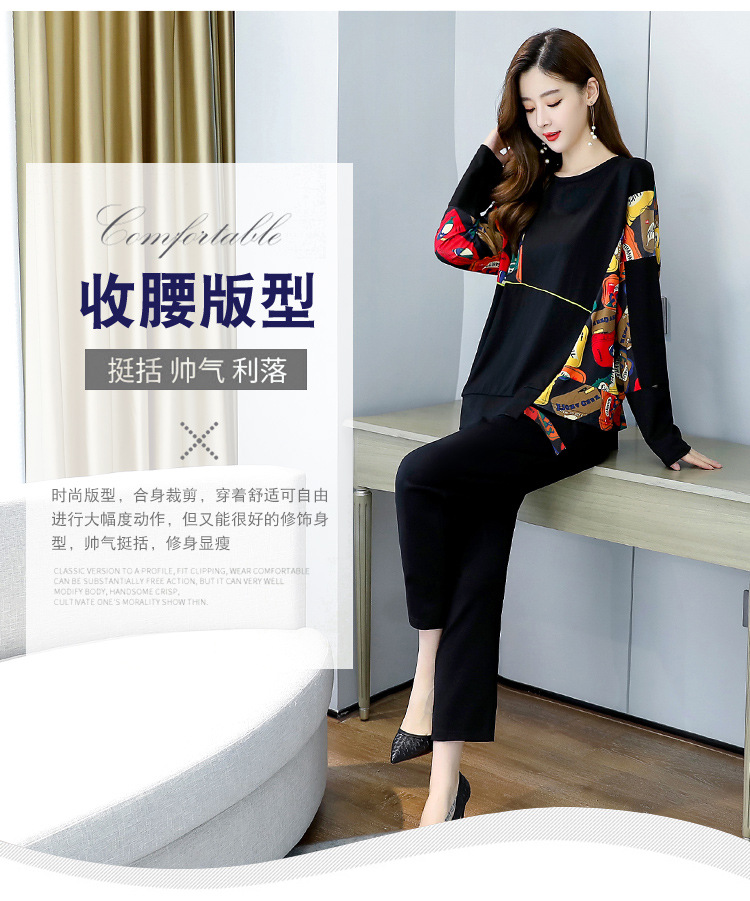 SP-10189SADW春款新款大码立领印花运动服两件套