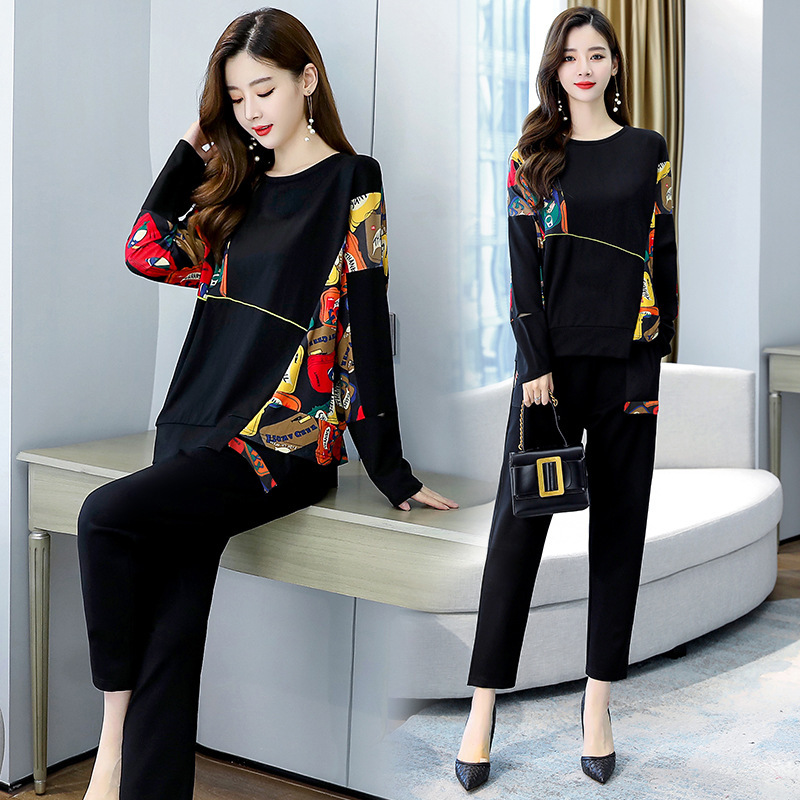 WZNH-XCMZ7386秋新款韩版简约个性拼接两件套