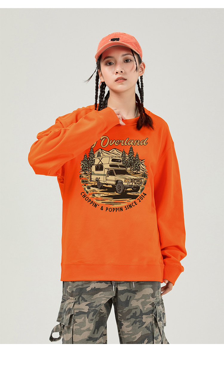 自由基地2022新款越野露营风印花潮流卫衣男女通勤毛圈圆领打底衫 NMT-1928