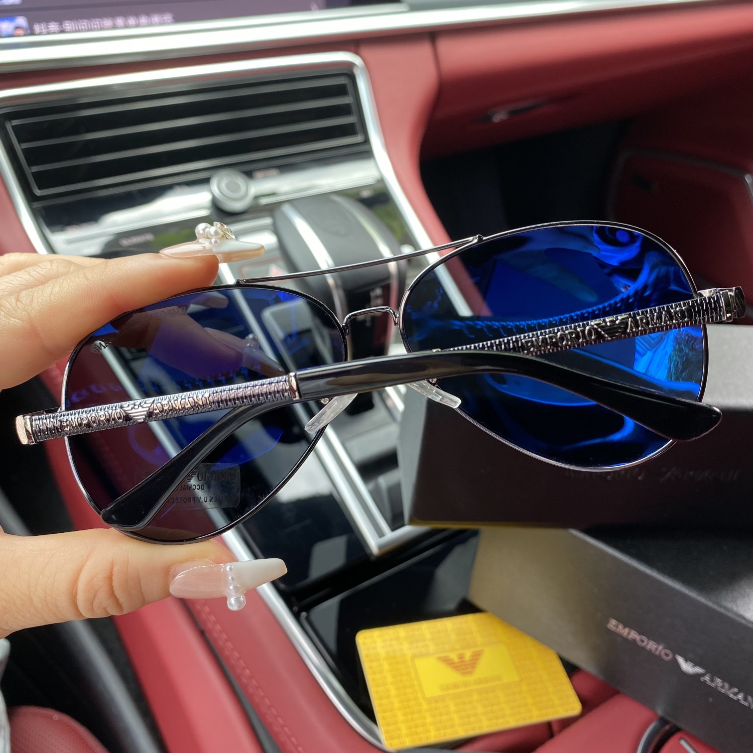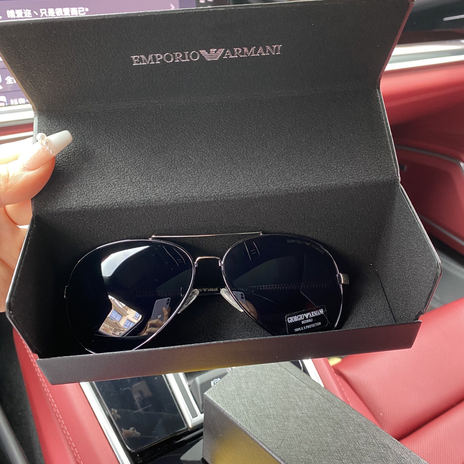 阿玛尼男士偏光镜太阳镜墨镜眼镜!内镀蓝膜,更有效的保护眼睛 夏日来临,墨镜出行必备!阿玛尼偏光镜片!!专柜包装,各种材料齐全!!带眼镜布!!皮制眼镜盒!!偏光镜片的制作非常独特。在镜片折射光源的角度上进行调整。好的眼镜一定要是偏光的镜片!!使视野更清晰,减轻视觉疲劳感。无论是开车还是户外游玩,还是佩戴偏光镜比较合适。 颜色 黑色