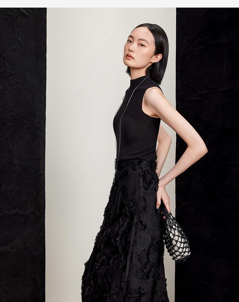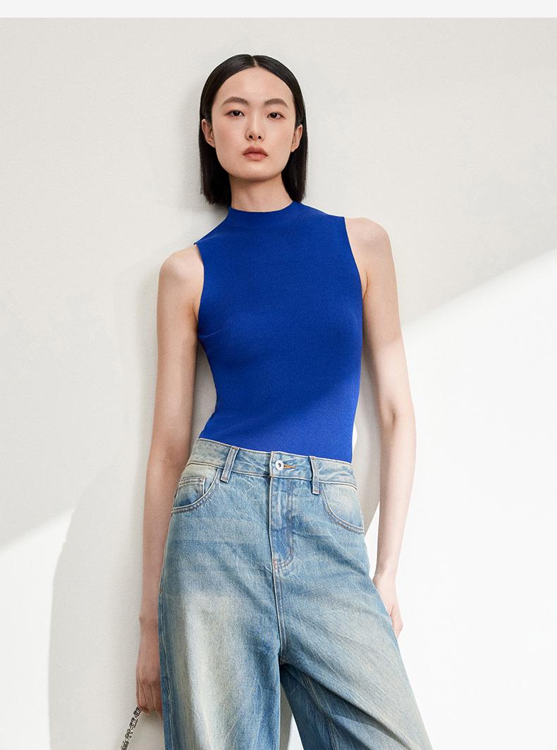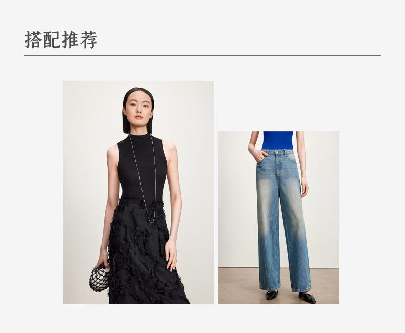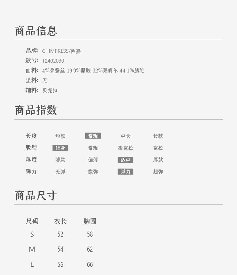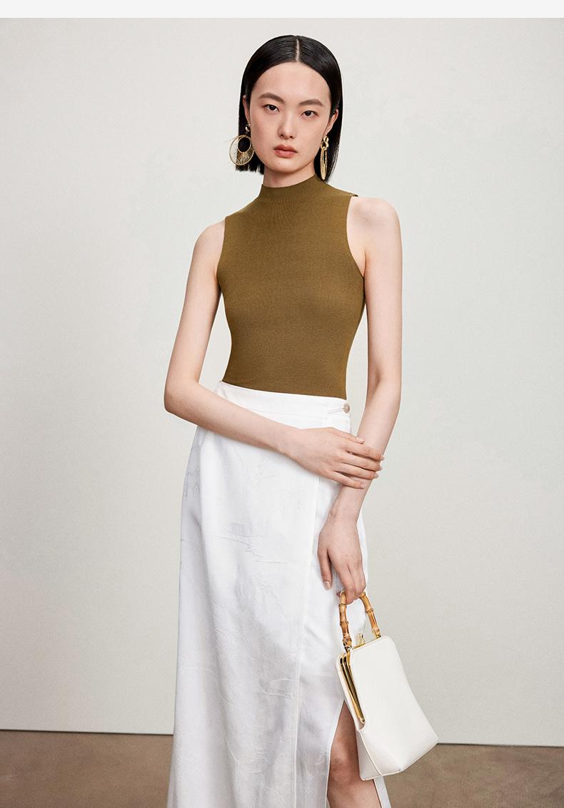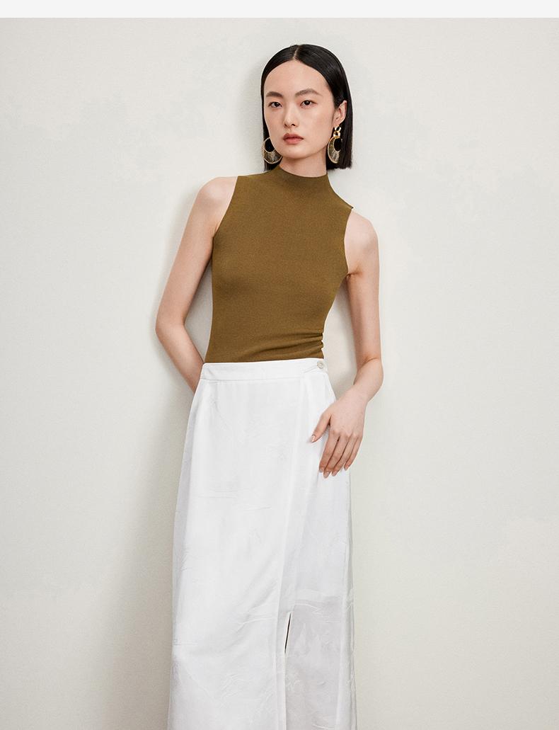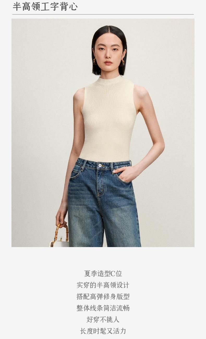 西嘉C+IMPRESS/西嘉醋酸半高领修身时髦T恤女士夏天外穿上衣T2402030