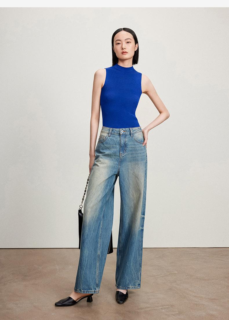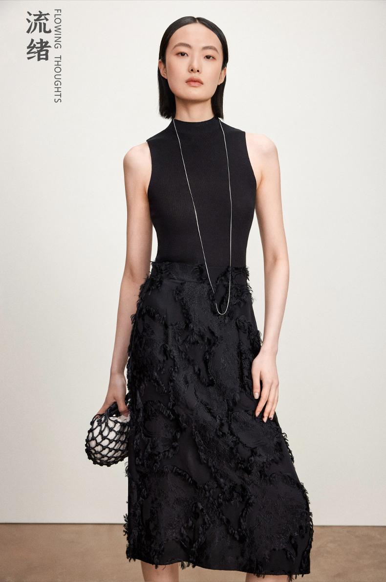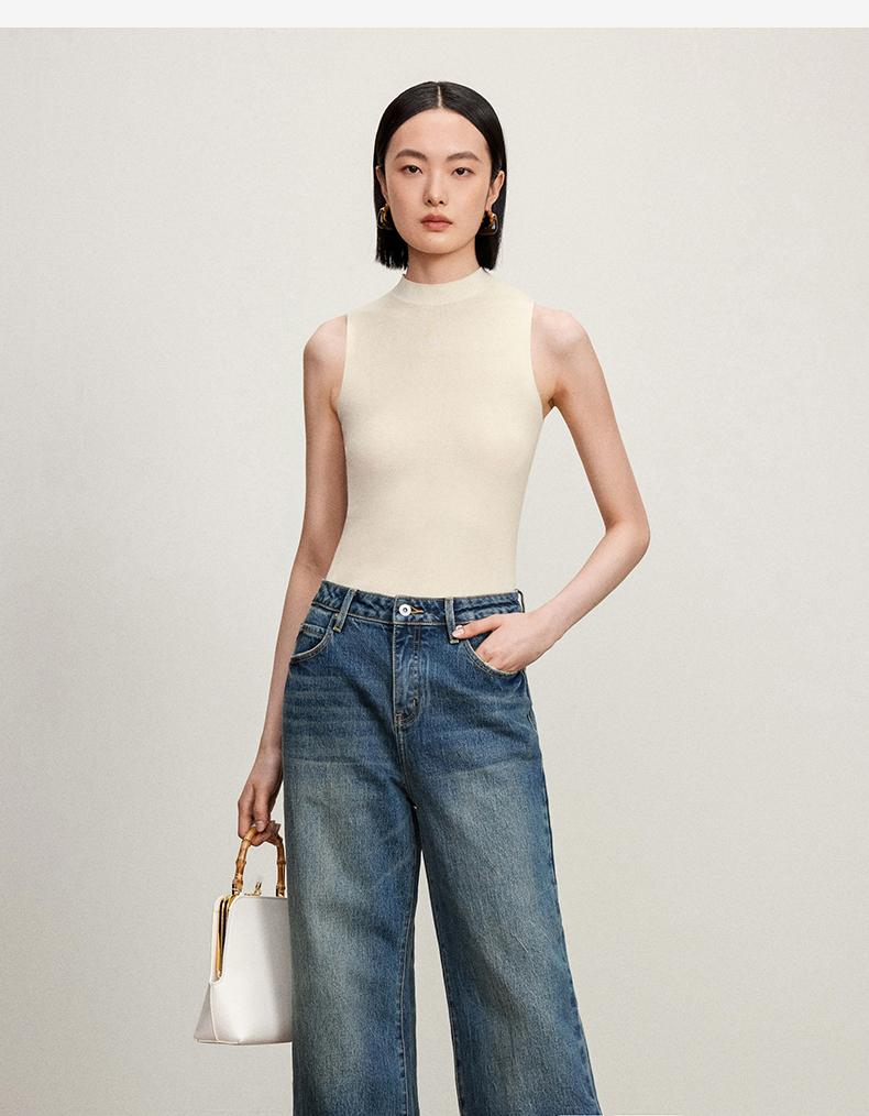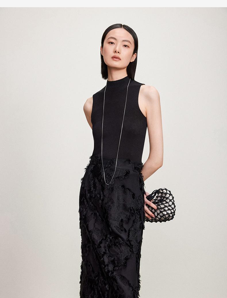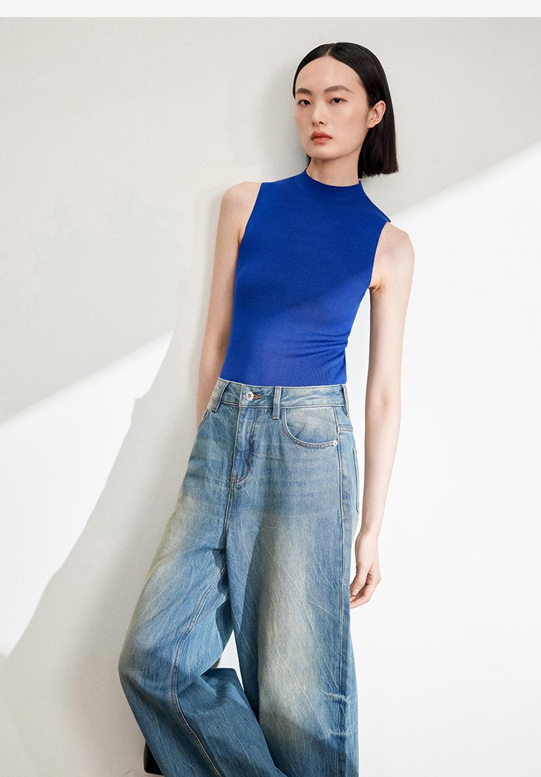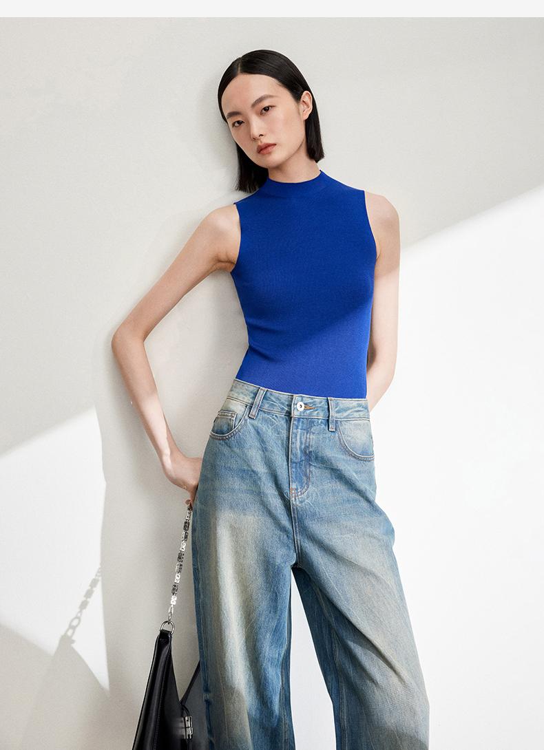 西嘉C+IMPRESS/西嘉醋酸半高领修身时髦T恤女士夏天外穿上衣T2402030