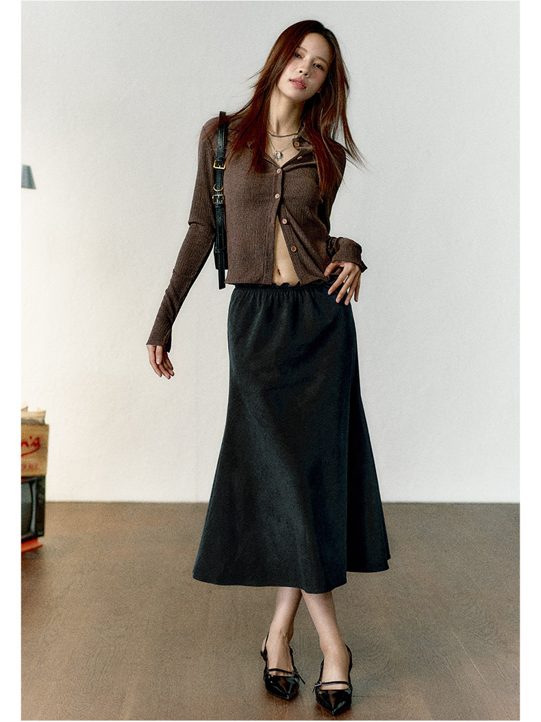 初语半身裙女新款纯棉灯芯绒复古可露丽风中长款伞裙