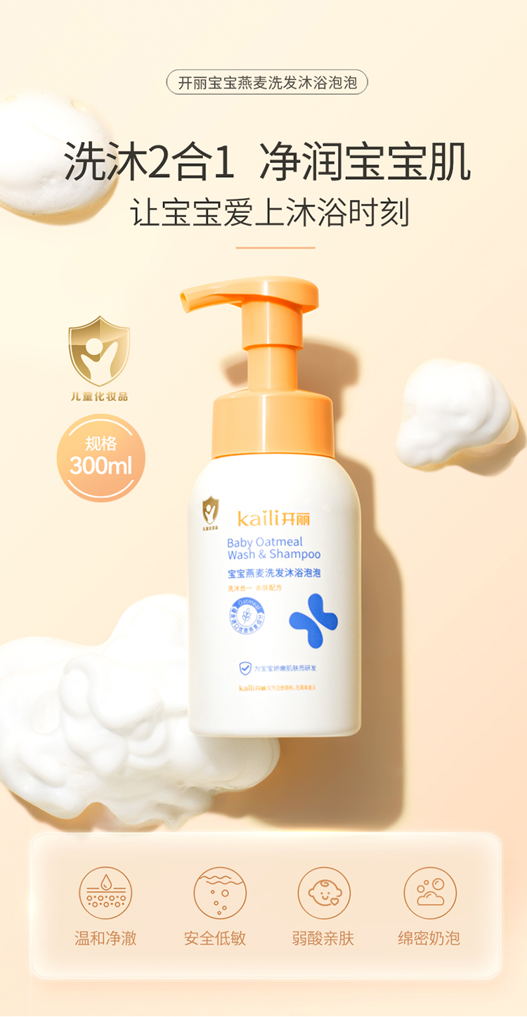 燕麦宝宝洗发沐浴露泡泡二合一 新生儿可用300ml/瓶