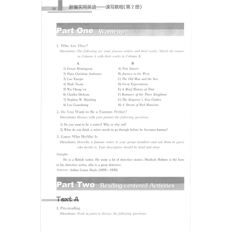 本书为《新编实用英语——读写教程》丛书之一,在框架设计,内容选择等方面体现针对性,quanwei性和实用性,在内容选择上,使语言和文化紧密相连,以提高学生的文化素养,了解各国风情和生活交流的实际情况,在不知不觉中提高语言技能。