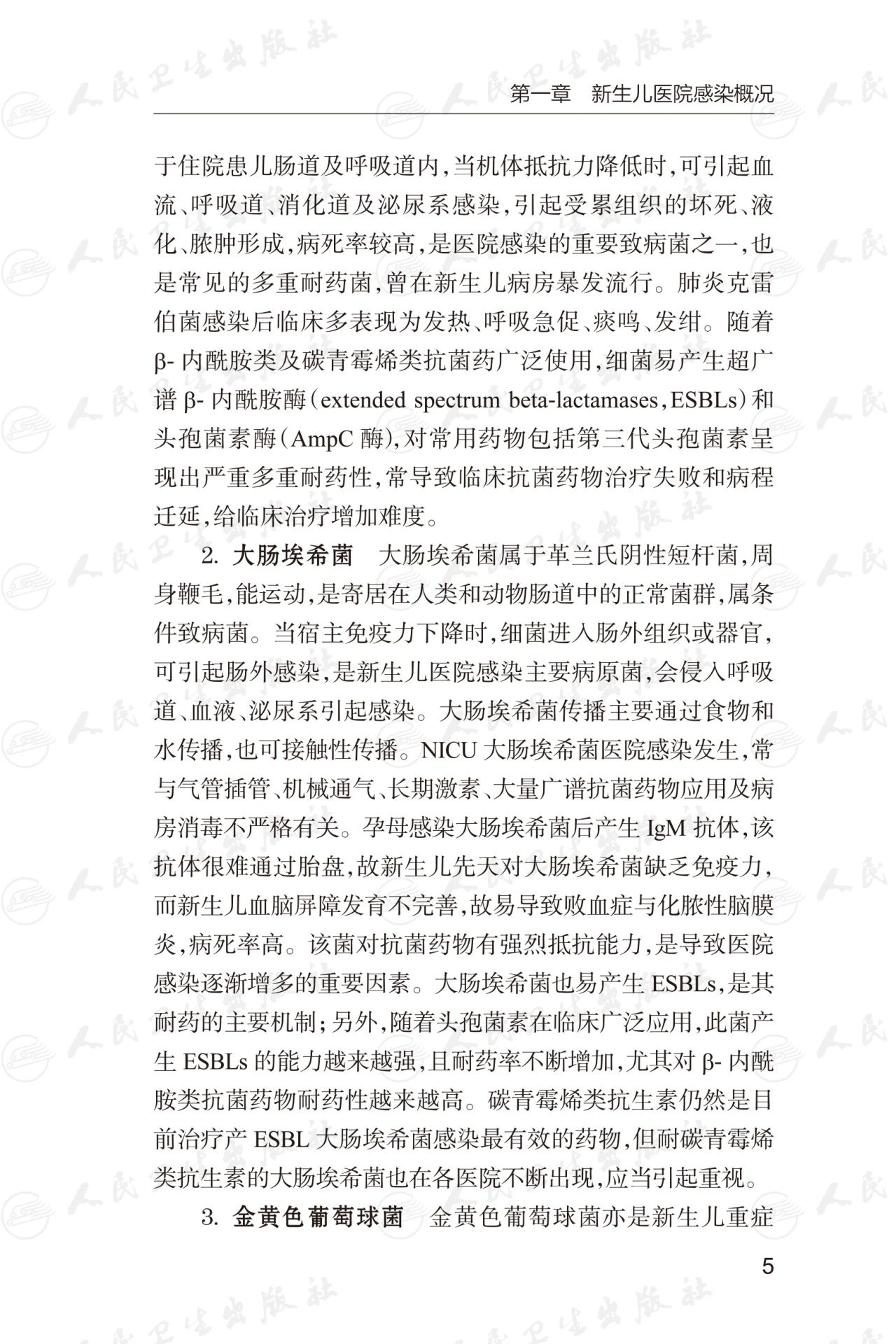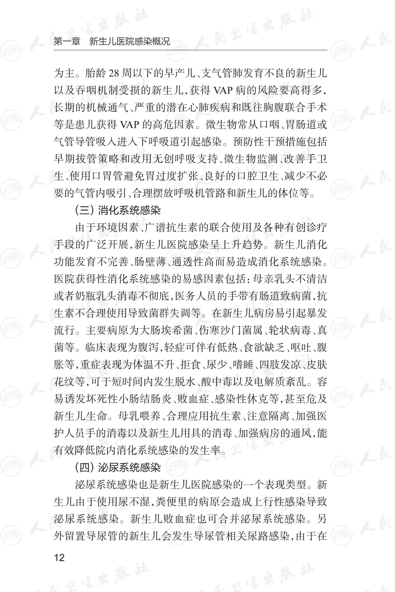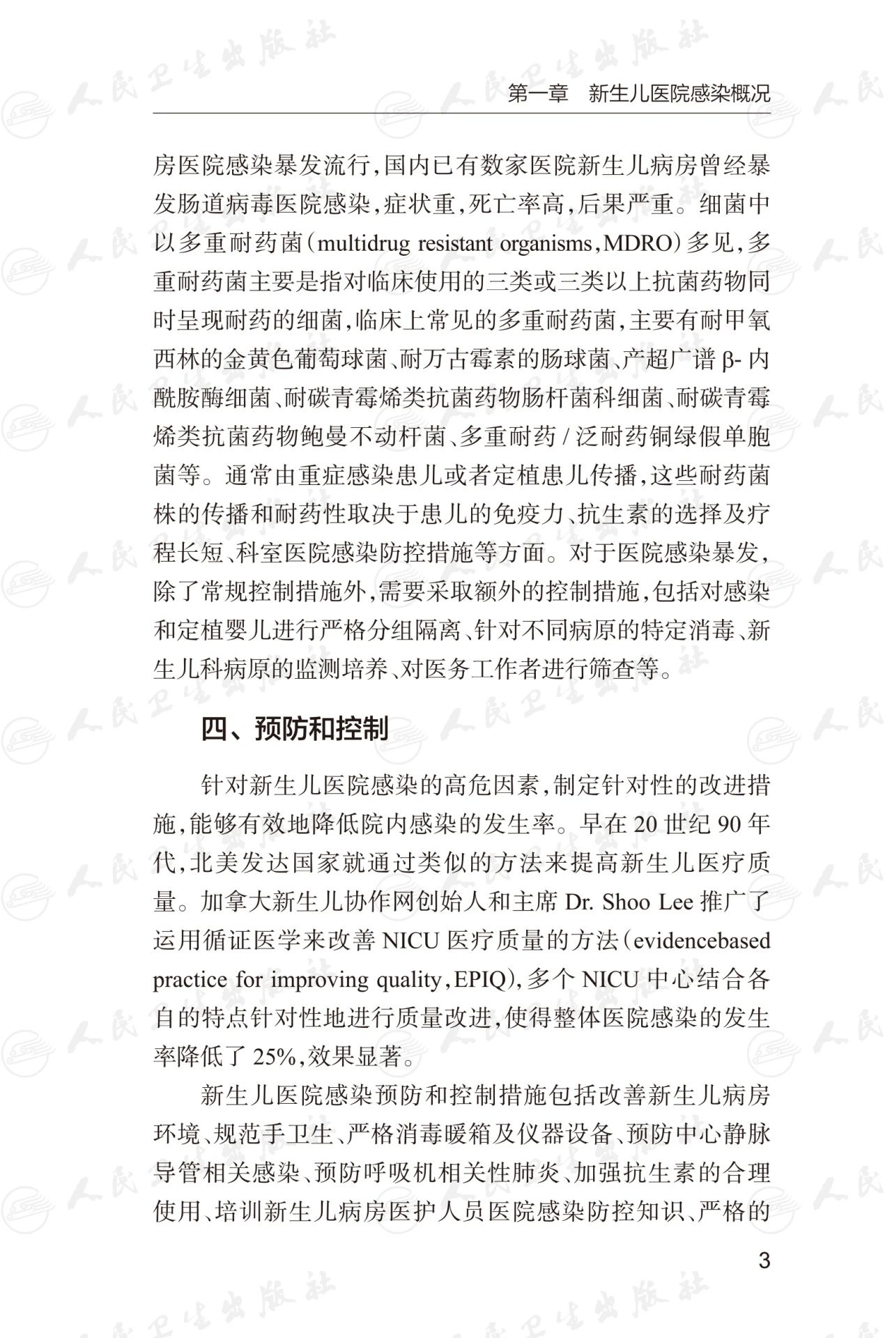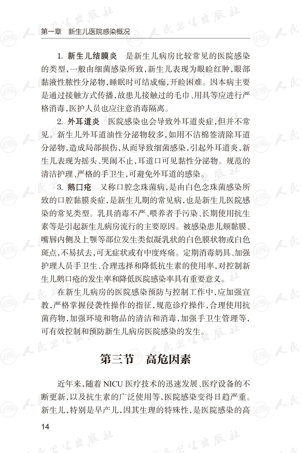 本书内容包括新生儿病房院感三级组织管理结构、各级管理组织和人员职责、新生儿病区建筑布局和设施设备规范、工作人员手卫生规范、接触传播隔离措施、患儿和环境主动监测的措施和方案、环境清洁消毒规范、配奶间、沐浴间、静配间的管理规范、织物管理、仪器规范管理、医疗废物管理、“三管”管理规范、合理使用抗生素的规范和建议、院感人员培训和多学科协作规范等。