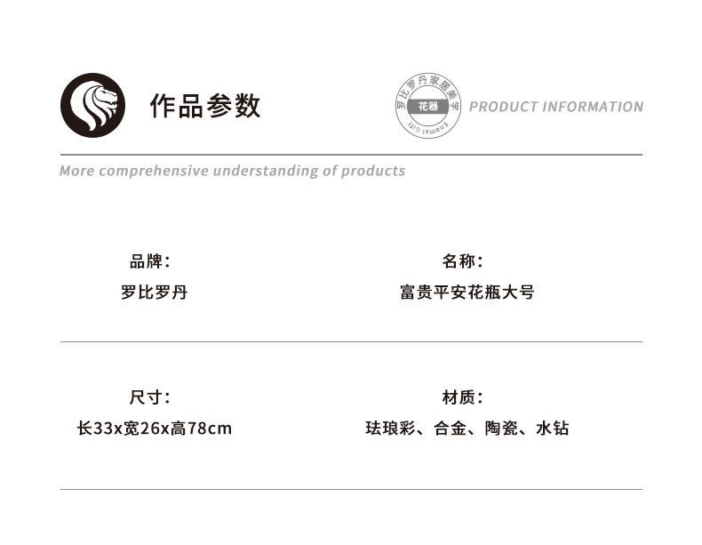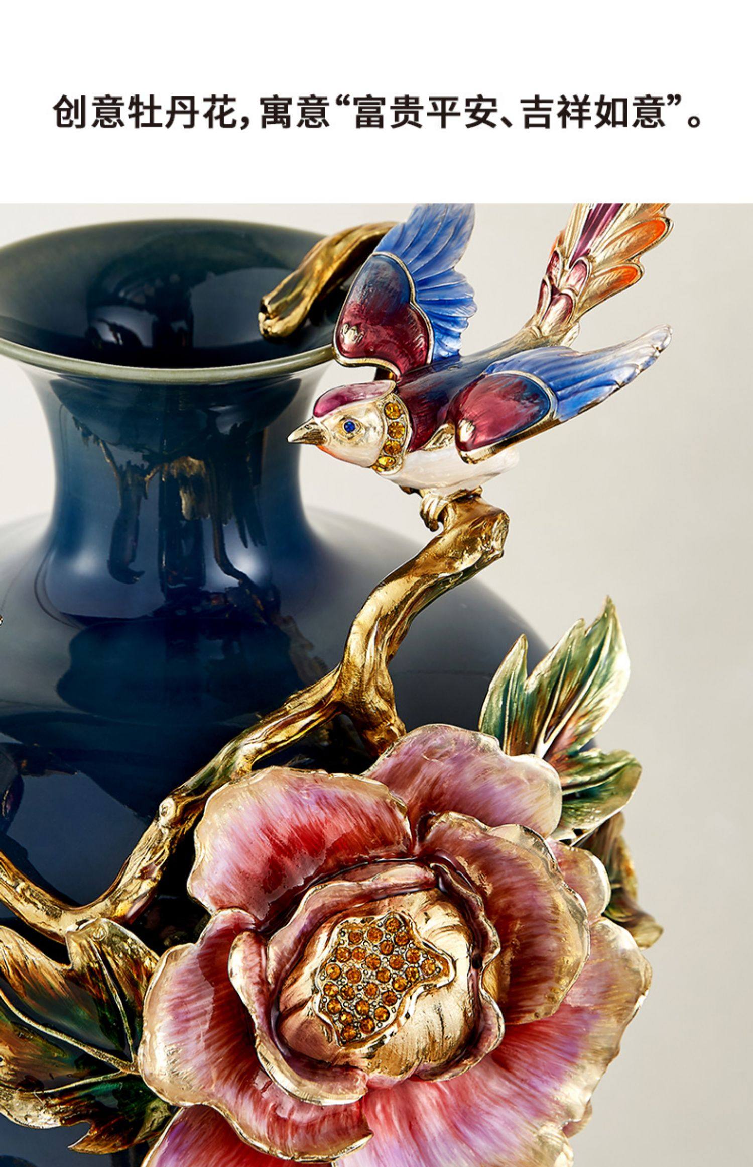 【彼达思】罗比罗丹富贵平安 大号 珐琅彩工艺花瓶