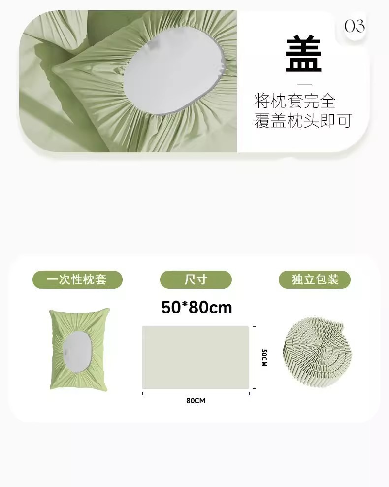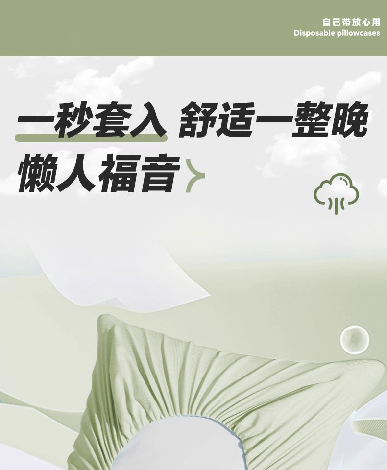 【360°包裹枕头!1秒搞定】柔懦亲肤,出差旅行便携式一次性枕套旅行出差防脏卫生枕头套酒店火车卧铺自带枕头巾。rb