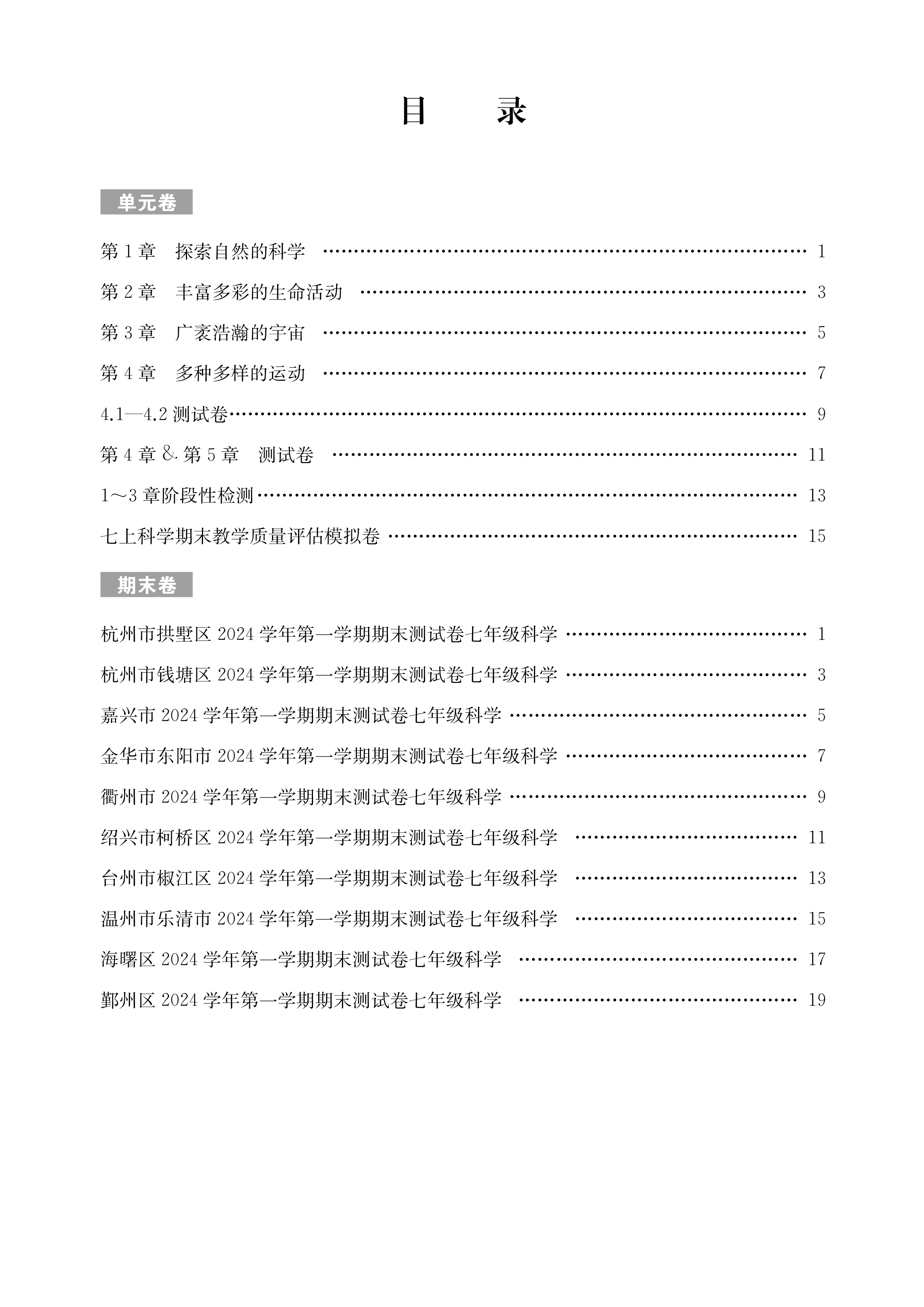 26版 浙江各地期末真卷.上册(语文 数学 英语 科学 社会)