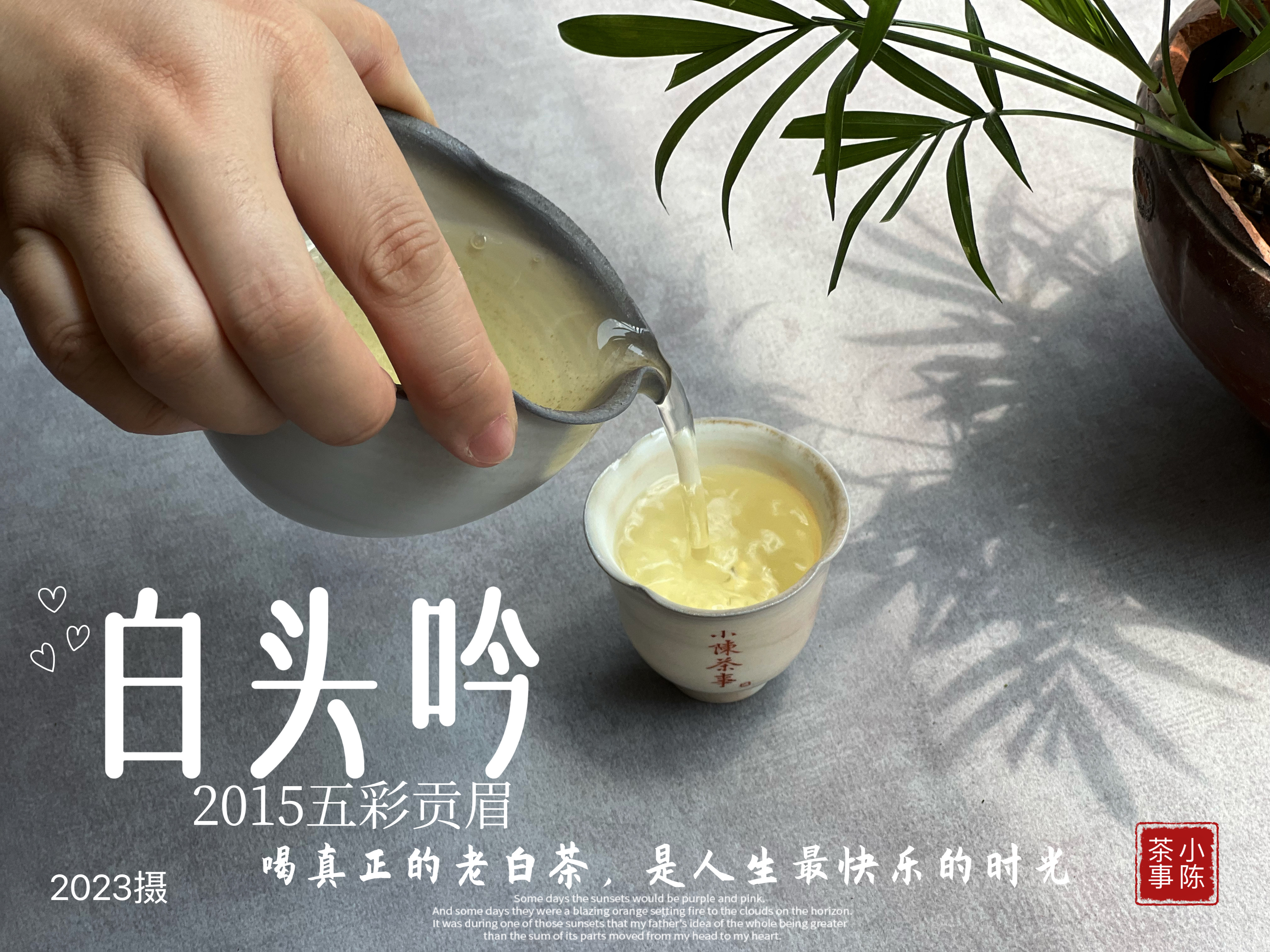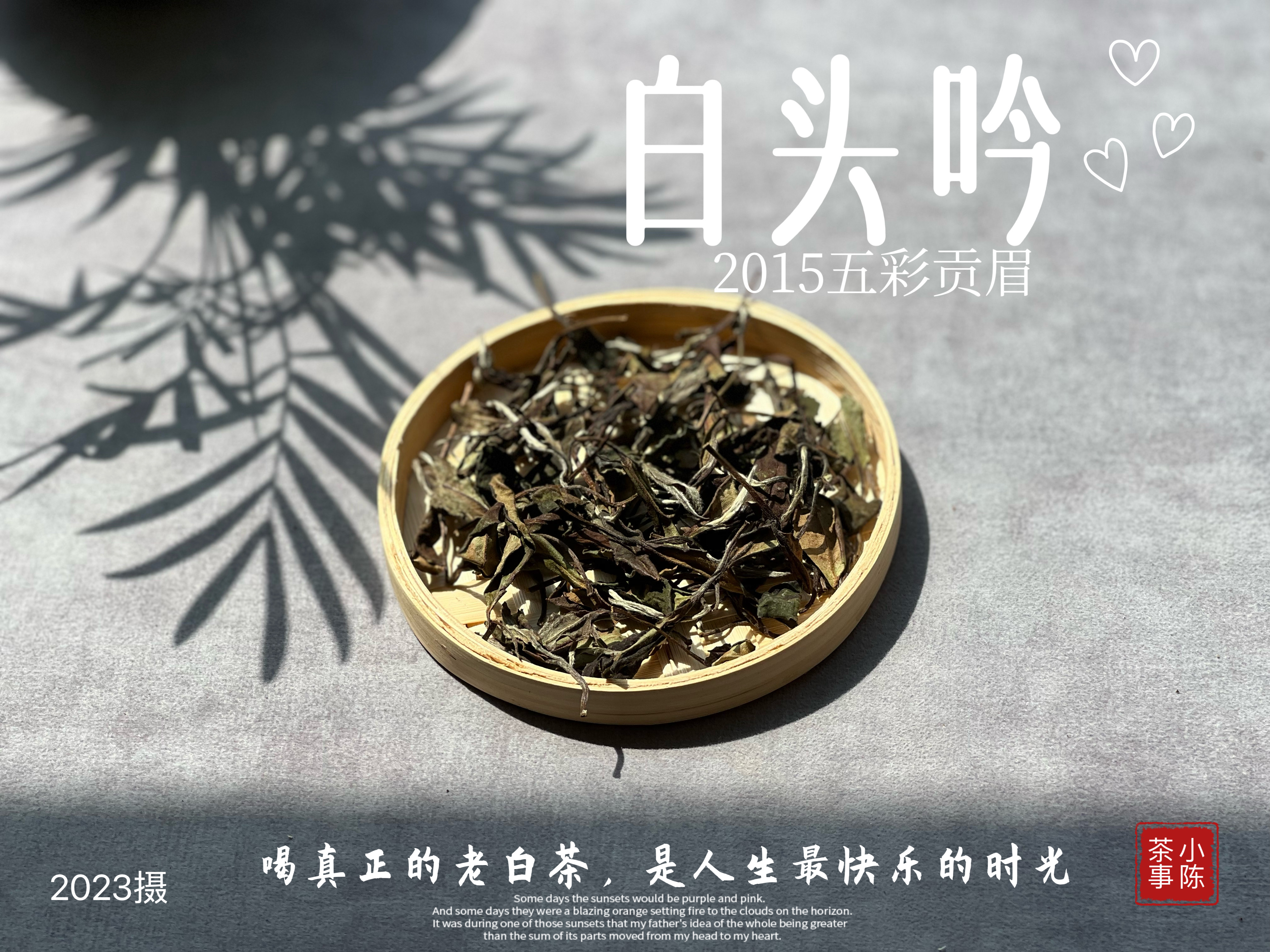 这是一款小陈茶事家硕果仅存,存量不多的老白茶(存世不足20斤),2015五彩贡眉《白头吟》,7年来首次推出,可以负责任的说,小陈茶事家上百万的茶友中99%的茶友都未曾品尝过这种珍藏级老白茶。
