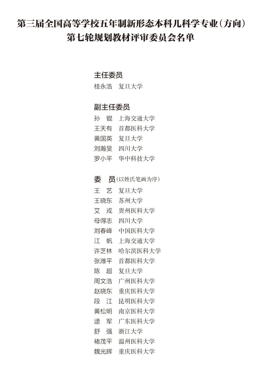 1.全国高等学校五年制本科儿科学专业(方向)**规划教材自1980年由原卫生部教材办公室组织编写出版第一轮,至今已有46年的历史。本套教材是我国唯一一套长期用于儿科学专业(方向)教育教学的精品教材,为我国培养了一代又一代具有岗位胜任力、有温度、有情怀的卓越儿科医疗卫生人才,为推动我国儿科教育事业和临床医疗事业的发展做出了历史性的巨大贡献。