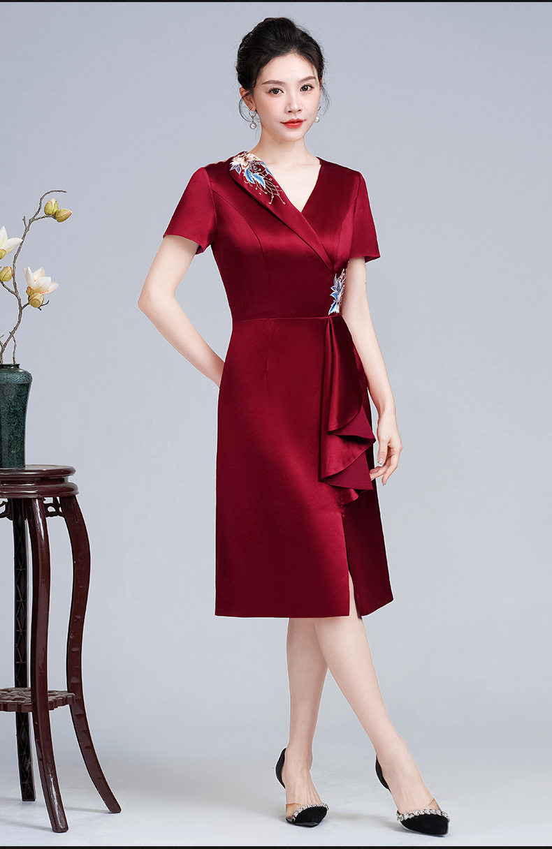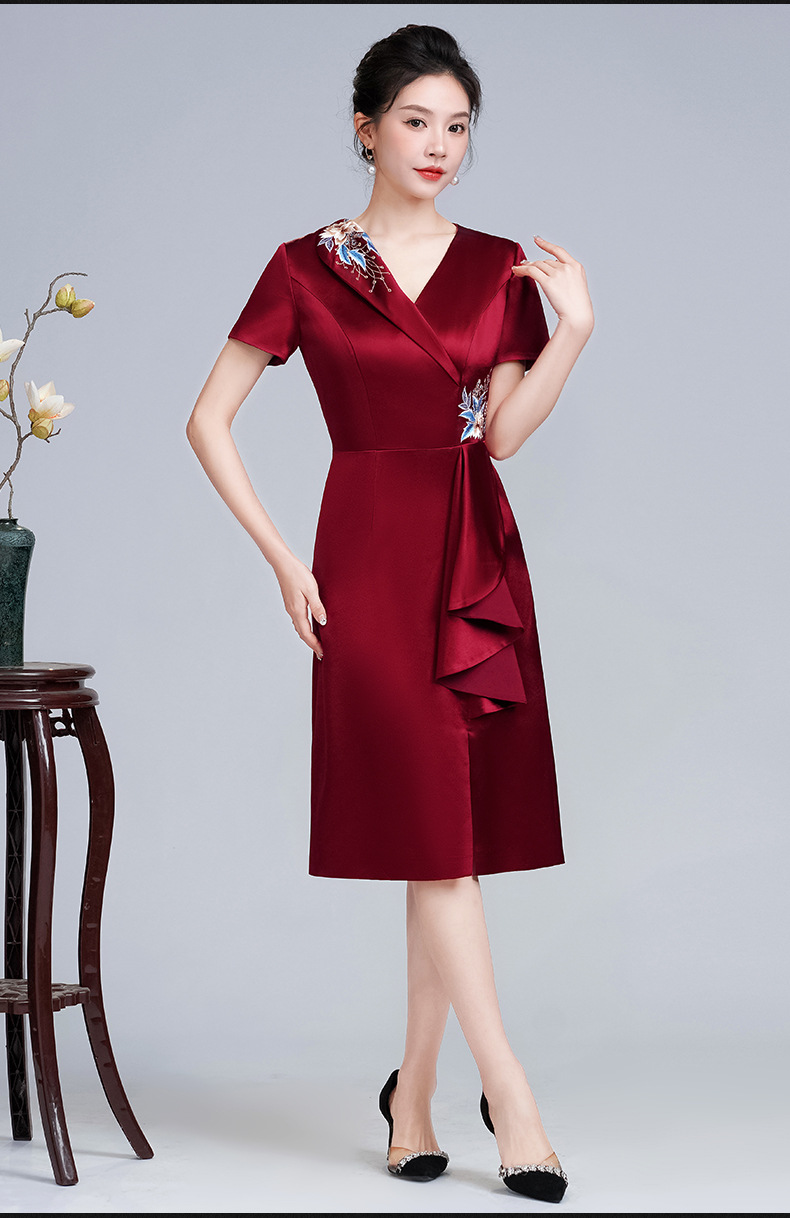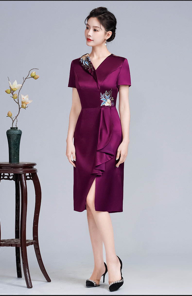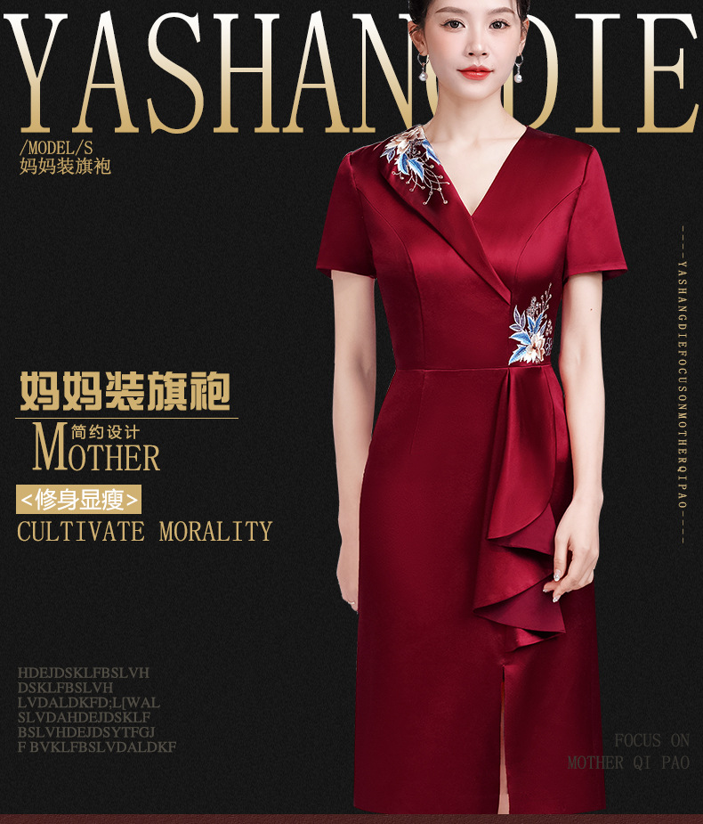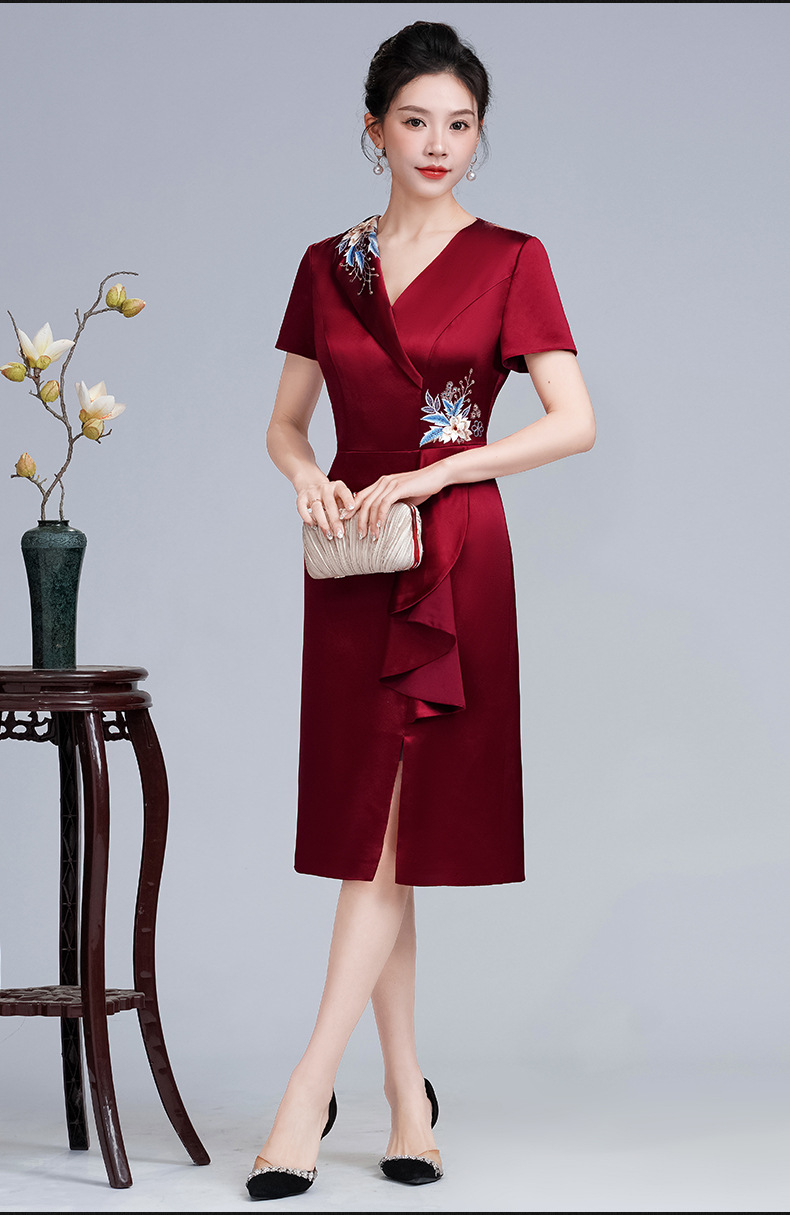 LHS-A172新款婚庆喜婆婆装婚宴礼服 高贵显瘦旗袍 新中式连衣裙女