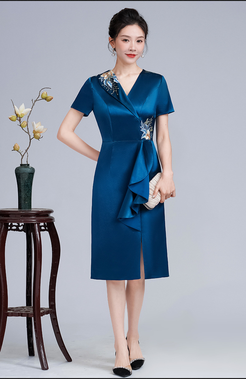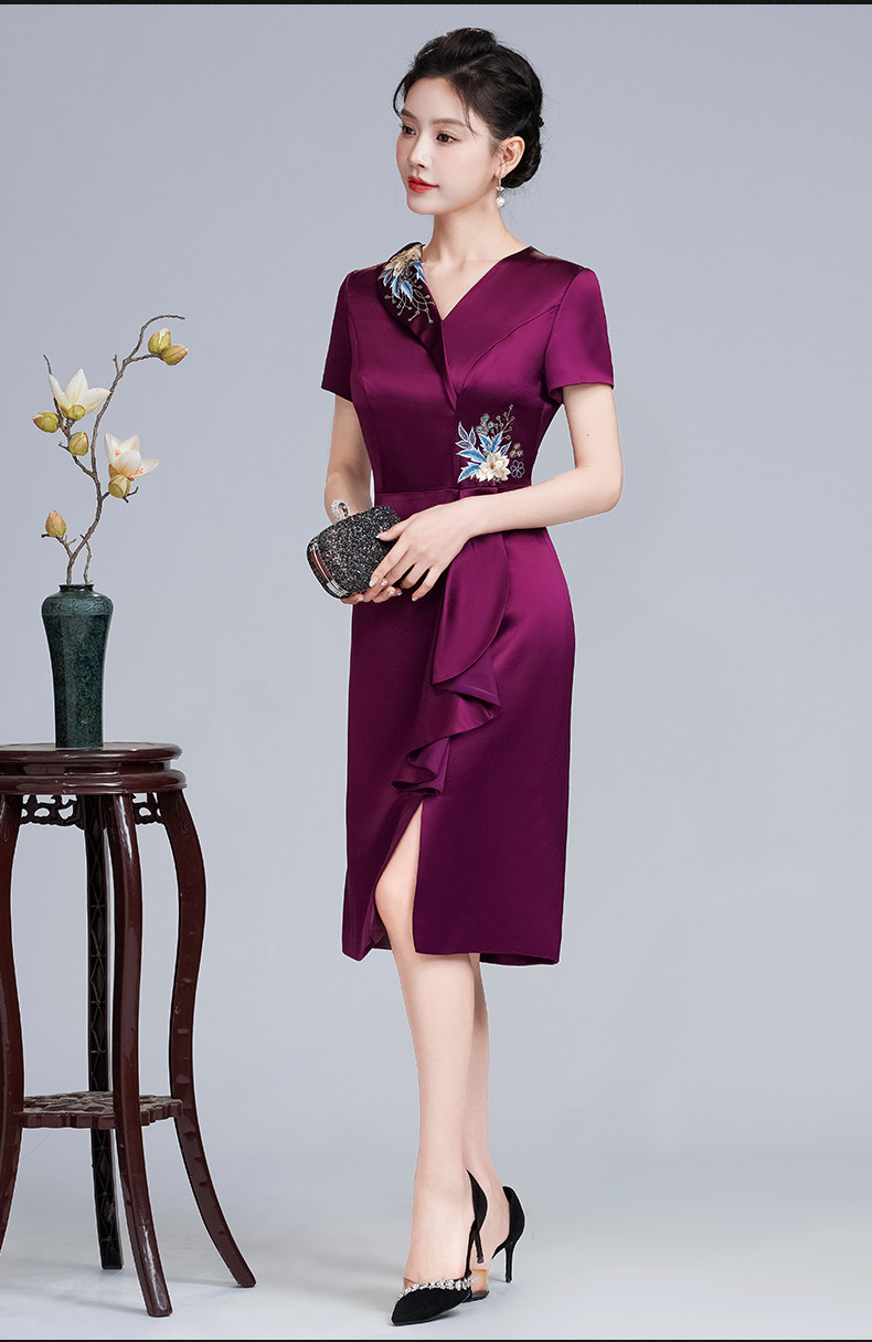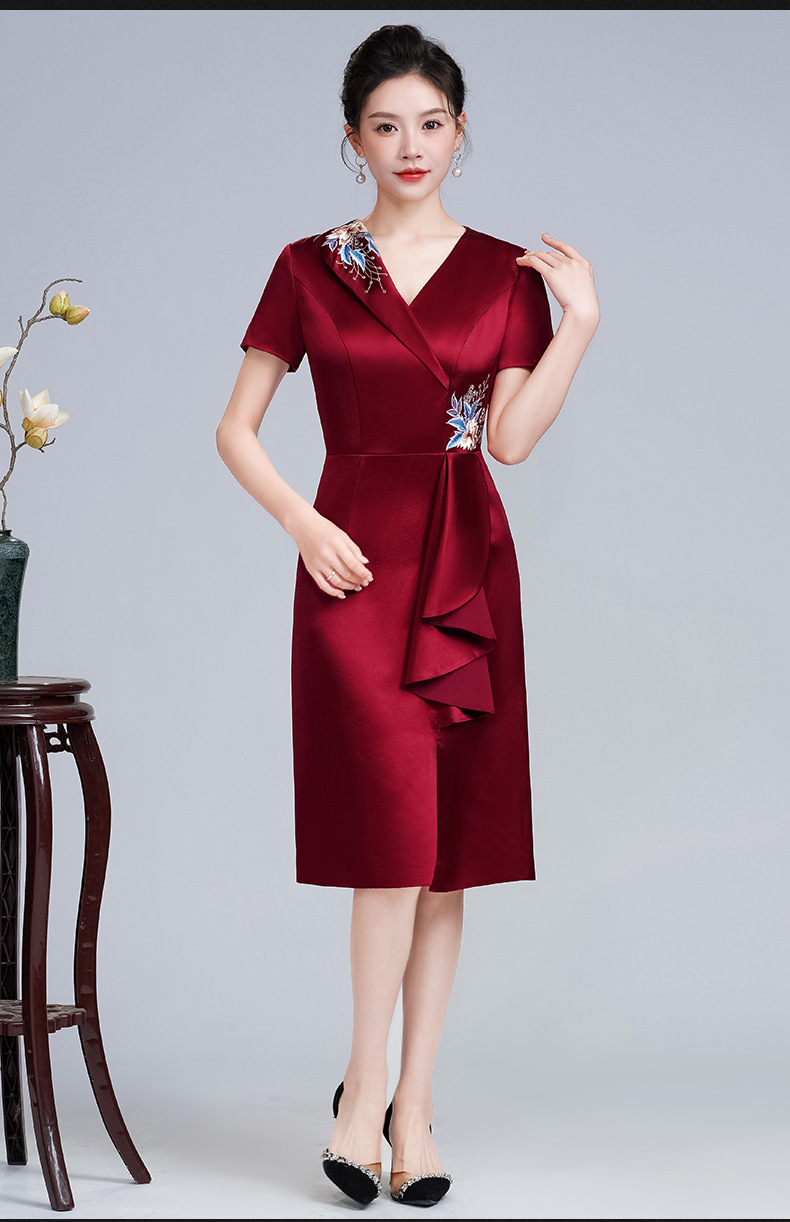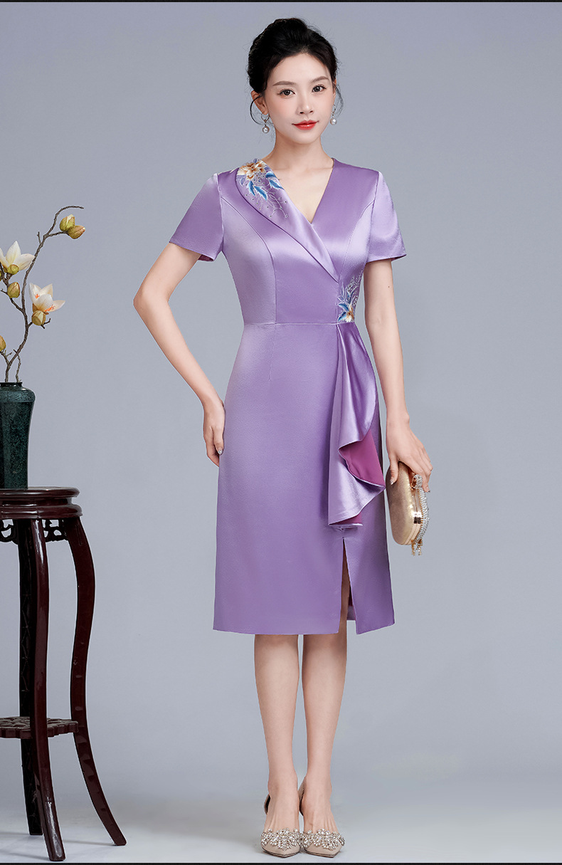 LHS-A172新款婚庆喜婆婆装婚宴礼服 高贵显瘦旗袍 新中式连衣裙女