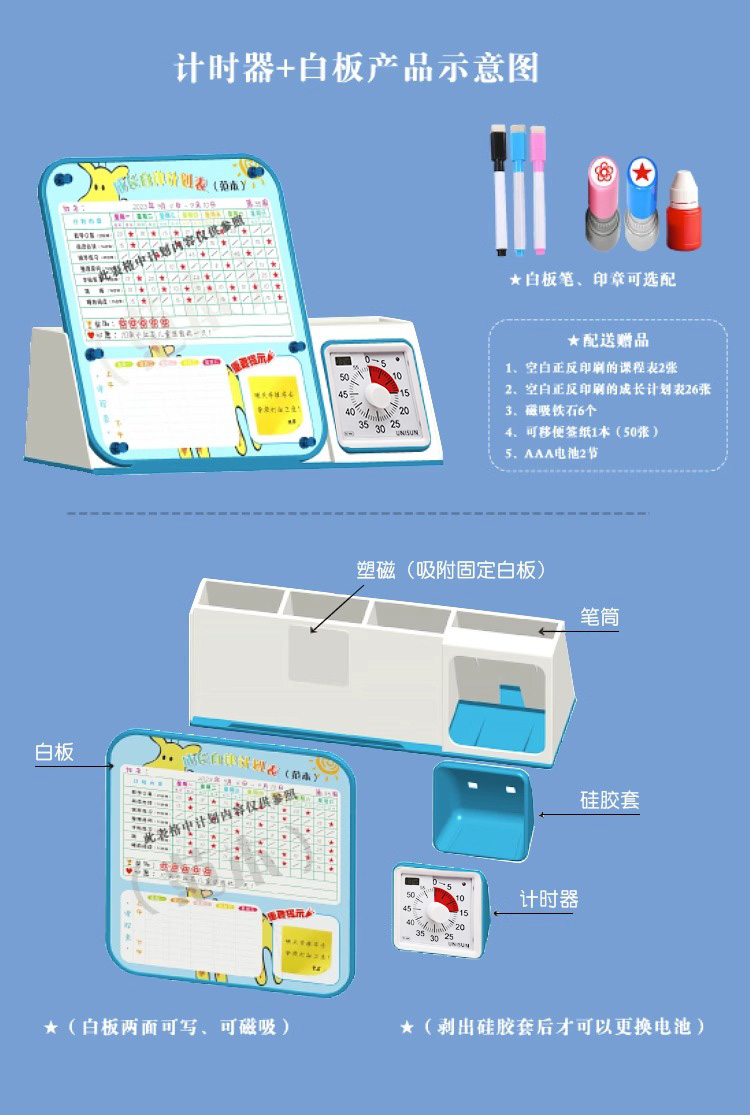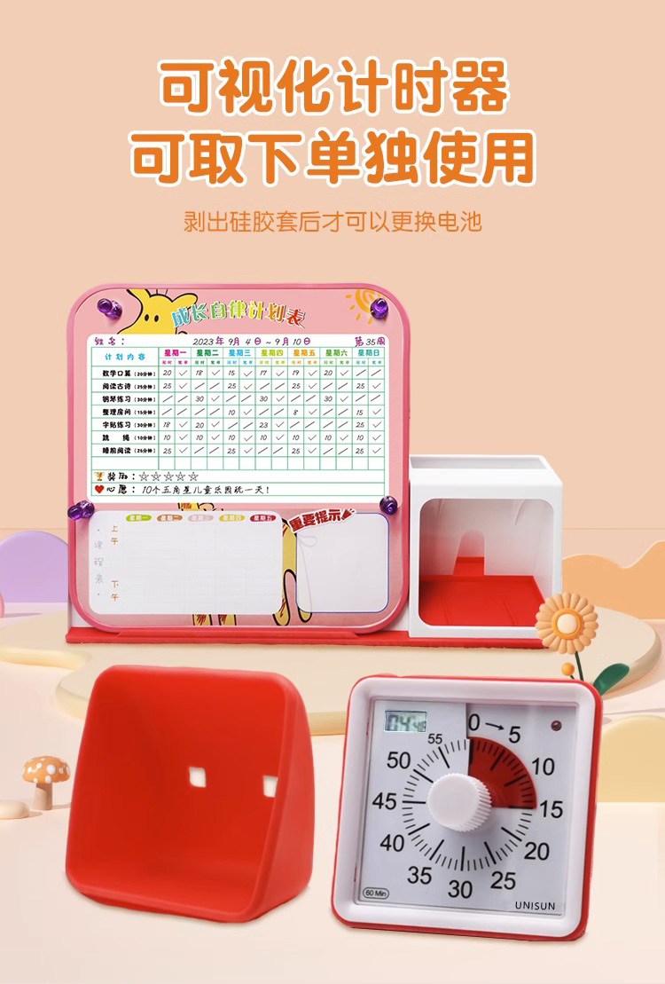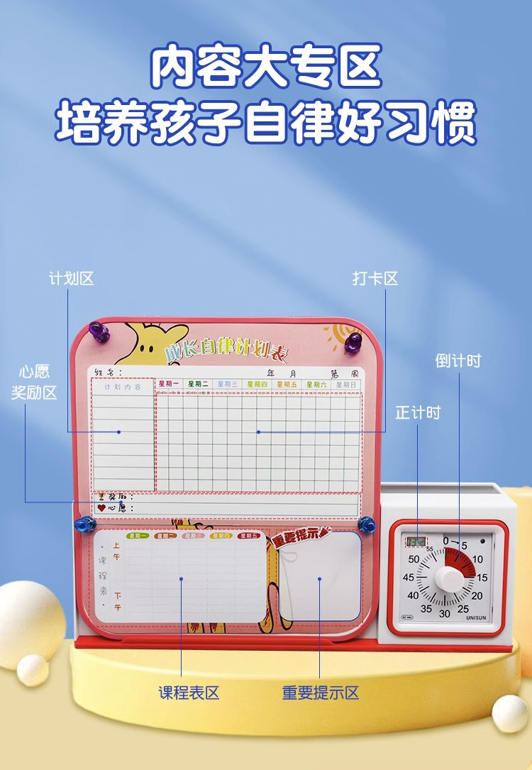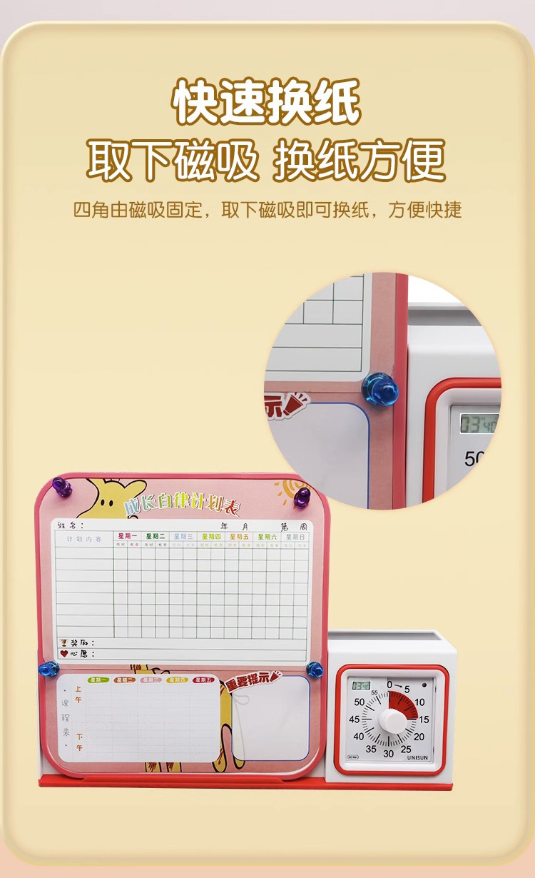 开学季(困妈专享)UNISUN 自律打卡白板笔+笔筒+时间管理器 三合一时间管理器