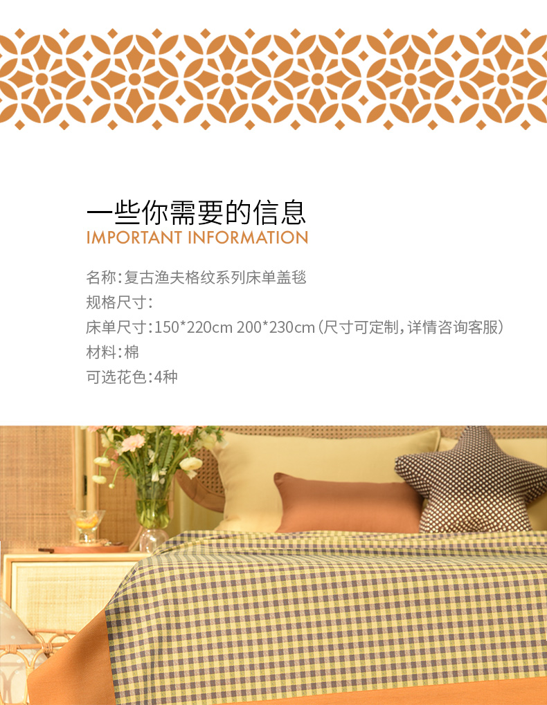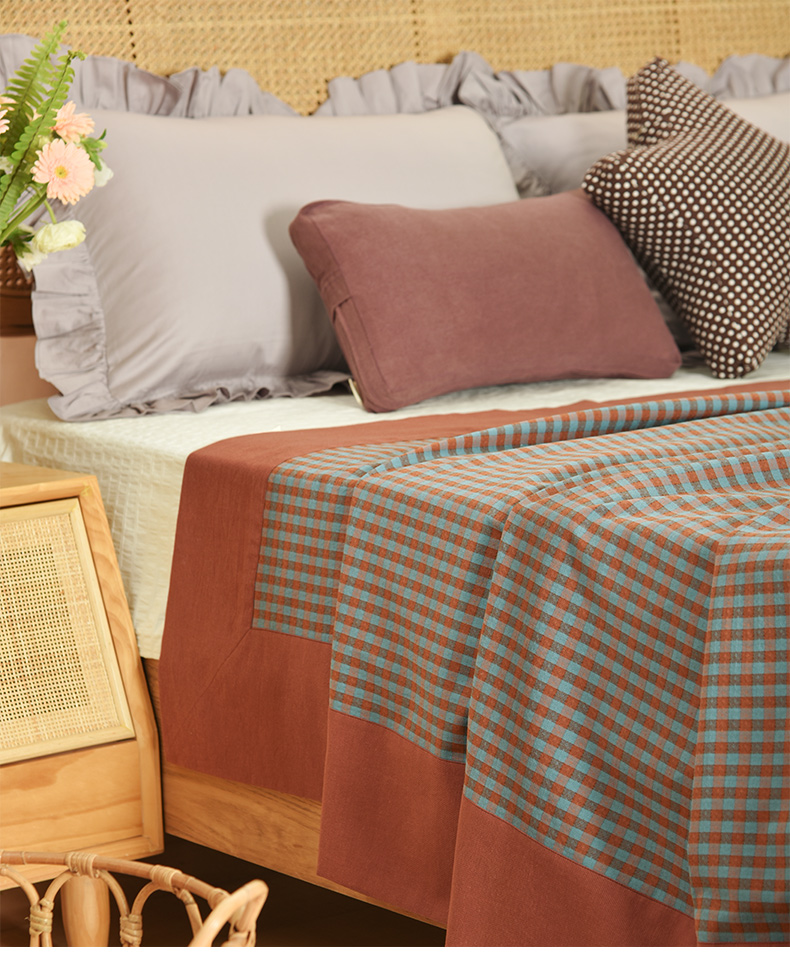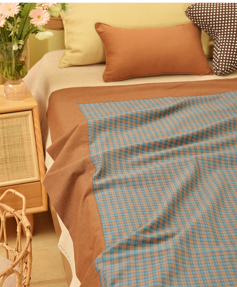 复古渔夫格纹系列床单盖毯纯棉床品
