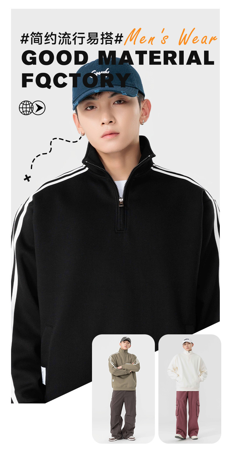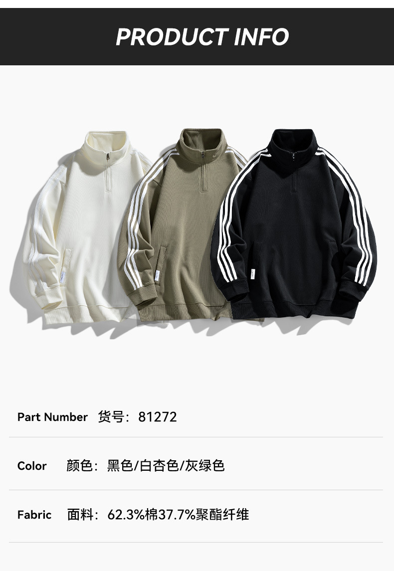 红览 半拉链卫衣男宽松长袖运动上衣81272