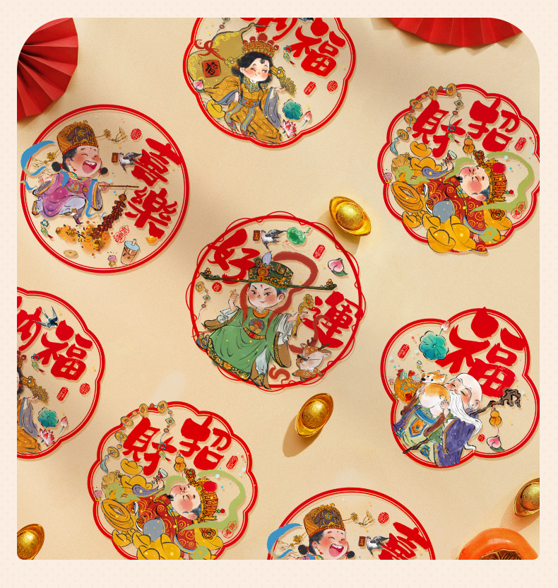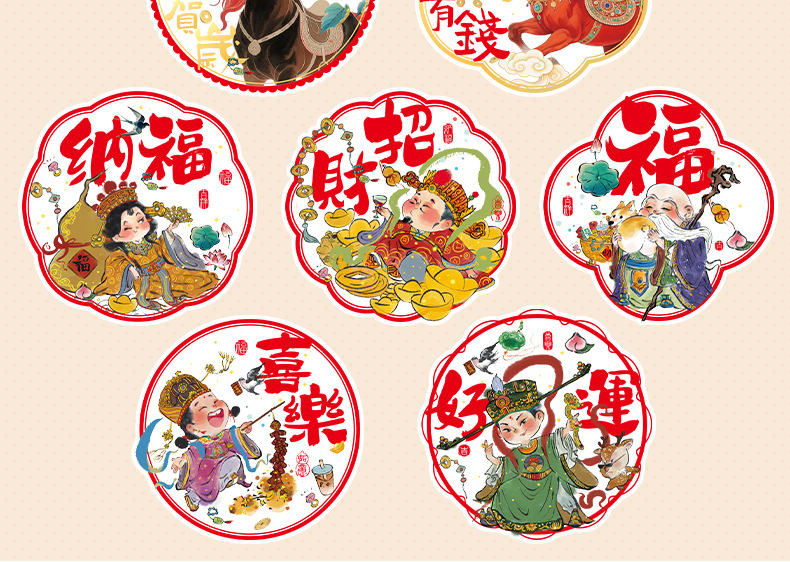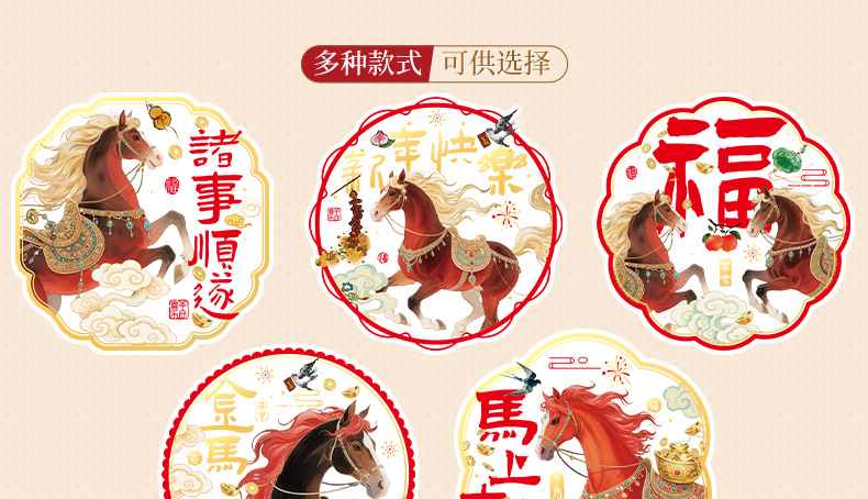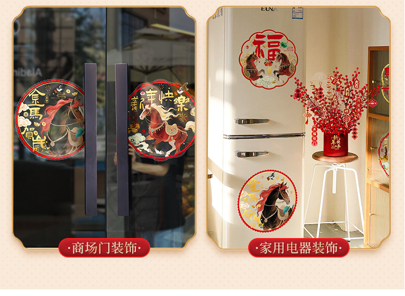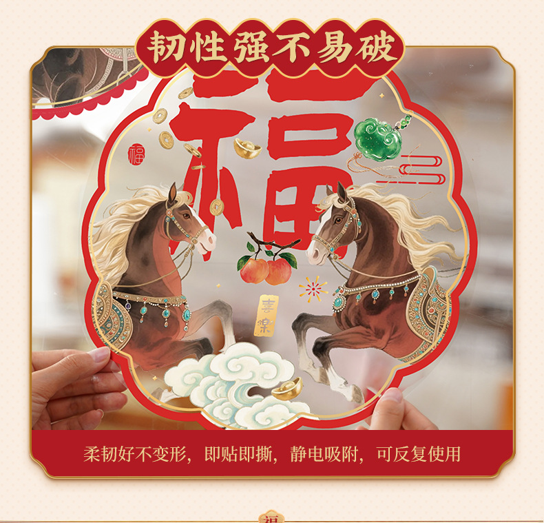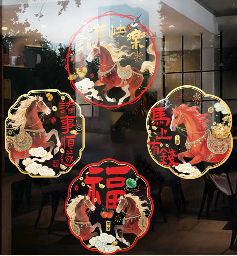 【招财进宝❗️马年大吉】2026新年装饰品马年春节彩色过年氛围贴纸静电贴玻璃门贴窗花。jc