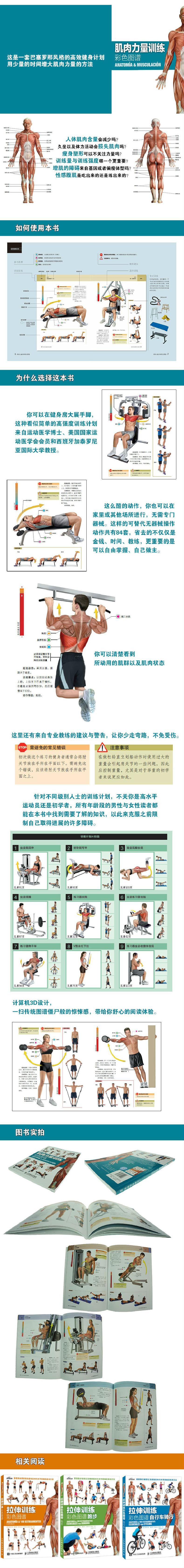 《肌肉力量训练彩色图谱》是一本完整的健身和力量训练可视化指南,共包括84个涉及胸部、背部、肩部、手臂、腿部、臀部和腹部的训练动作。针对每一个训练动作都用图示的方式进行展示,并详细介绍了重点训练的身体部位、起始姿势、训练要点、技术等级、注意事项以及需要避免的常见错误,还给出了在家庭、办公室或其他场所不使用器械或仅使用简单的器械就可以达到同样效果的替代训练方法。在《肌肉力量训练彩色图谱》末尾部分,针对不同水平的人群分别给出了初级、中级和高级训练计划。